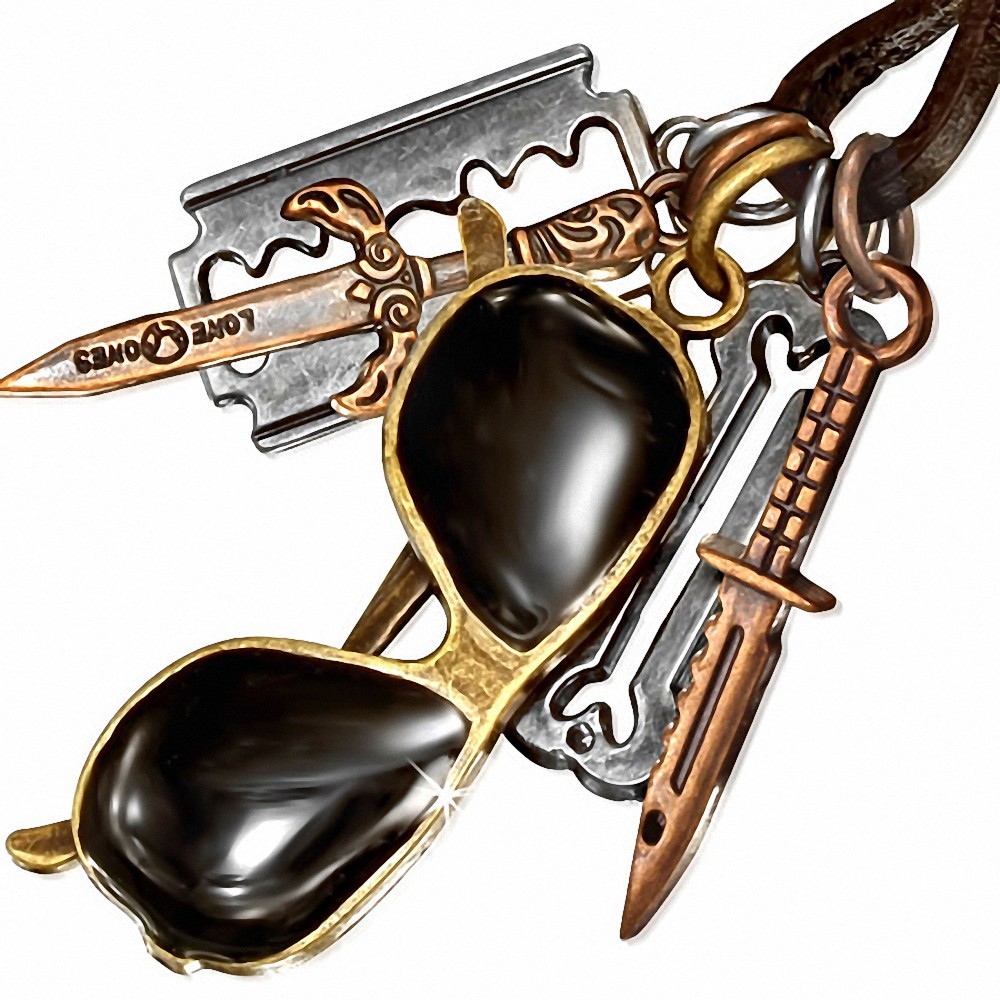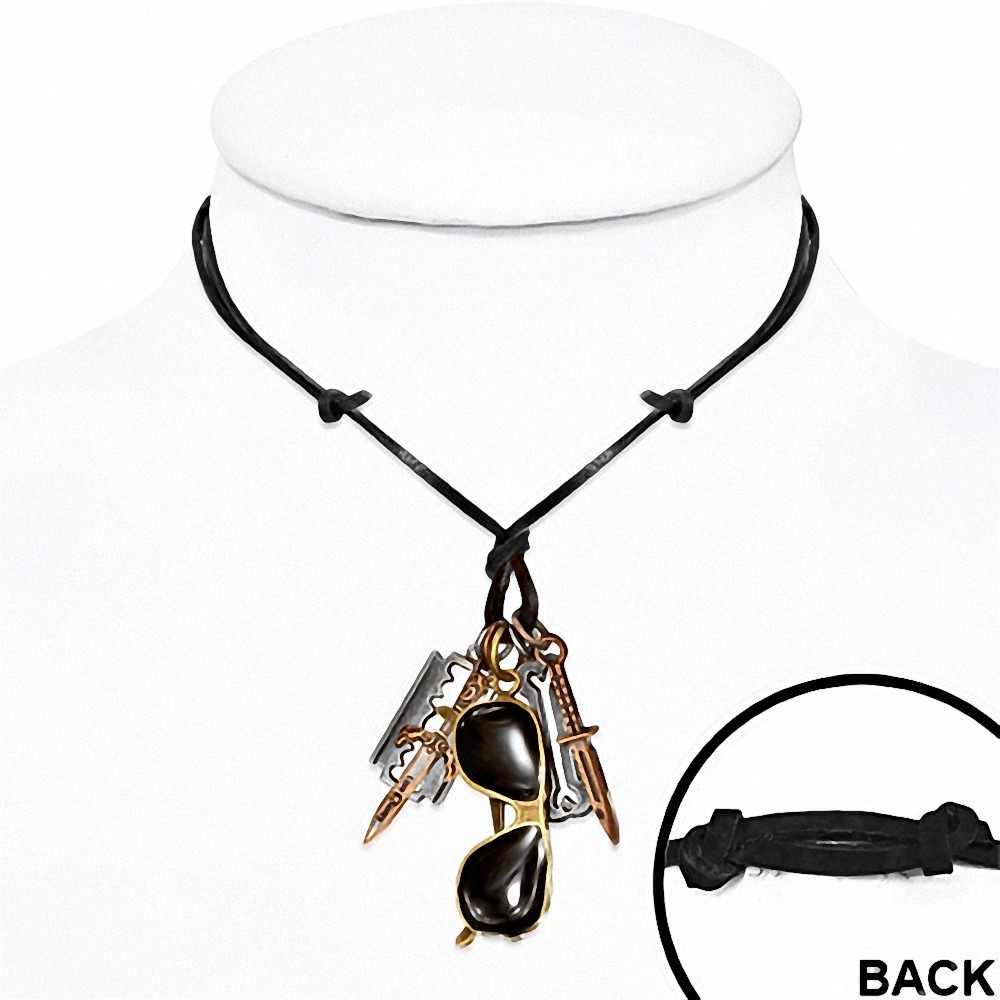 Lunettes de soleil alliage lame de rasoir clé à molette Couteau Croix charm réglable collier en cuir noir Lunettes de soleil alliage lame de rasoir clé à molette Couteau Croix charm réglable collier en cuir noir