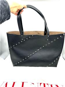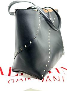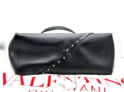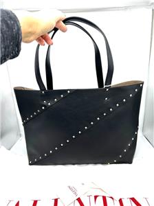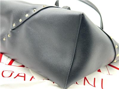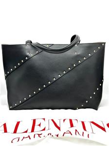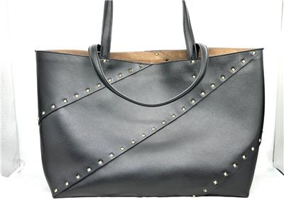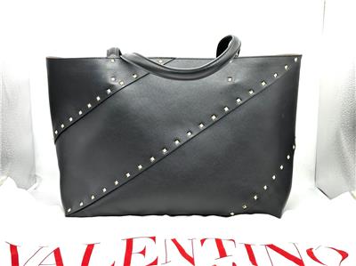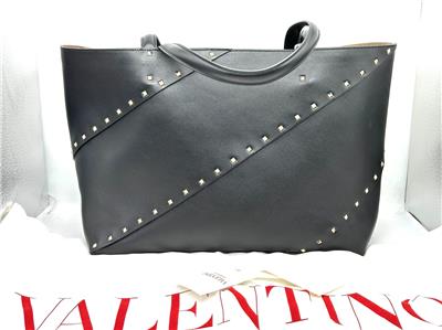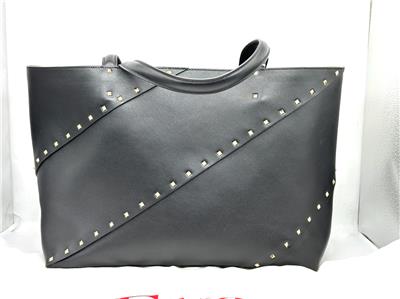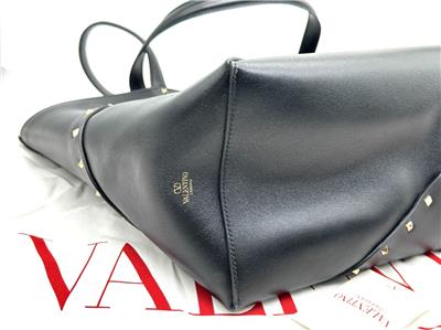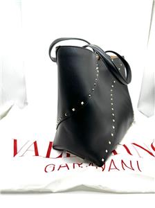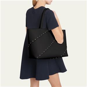 - The signature Valentino Garavani Rockstud adorns this roomy calfskin tote bag, creating a practical accessory that boasts an elegant edge.