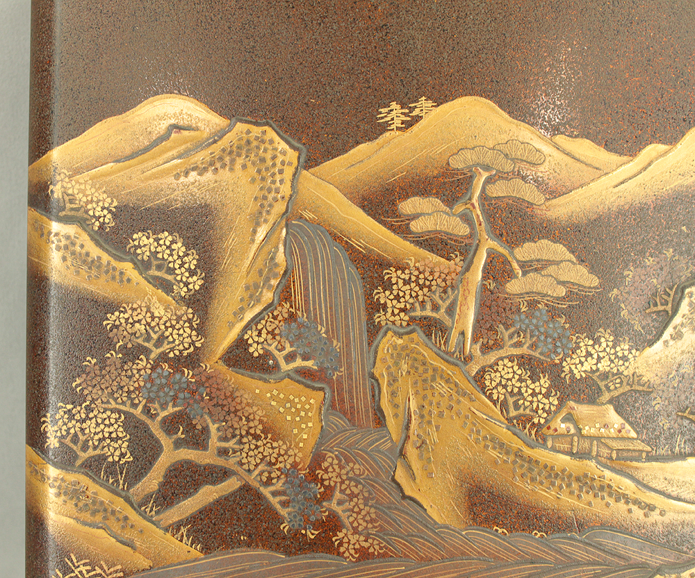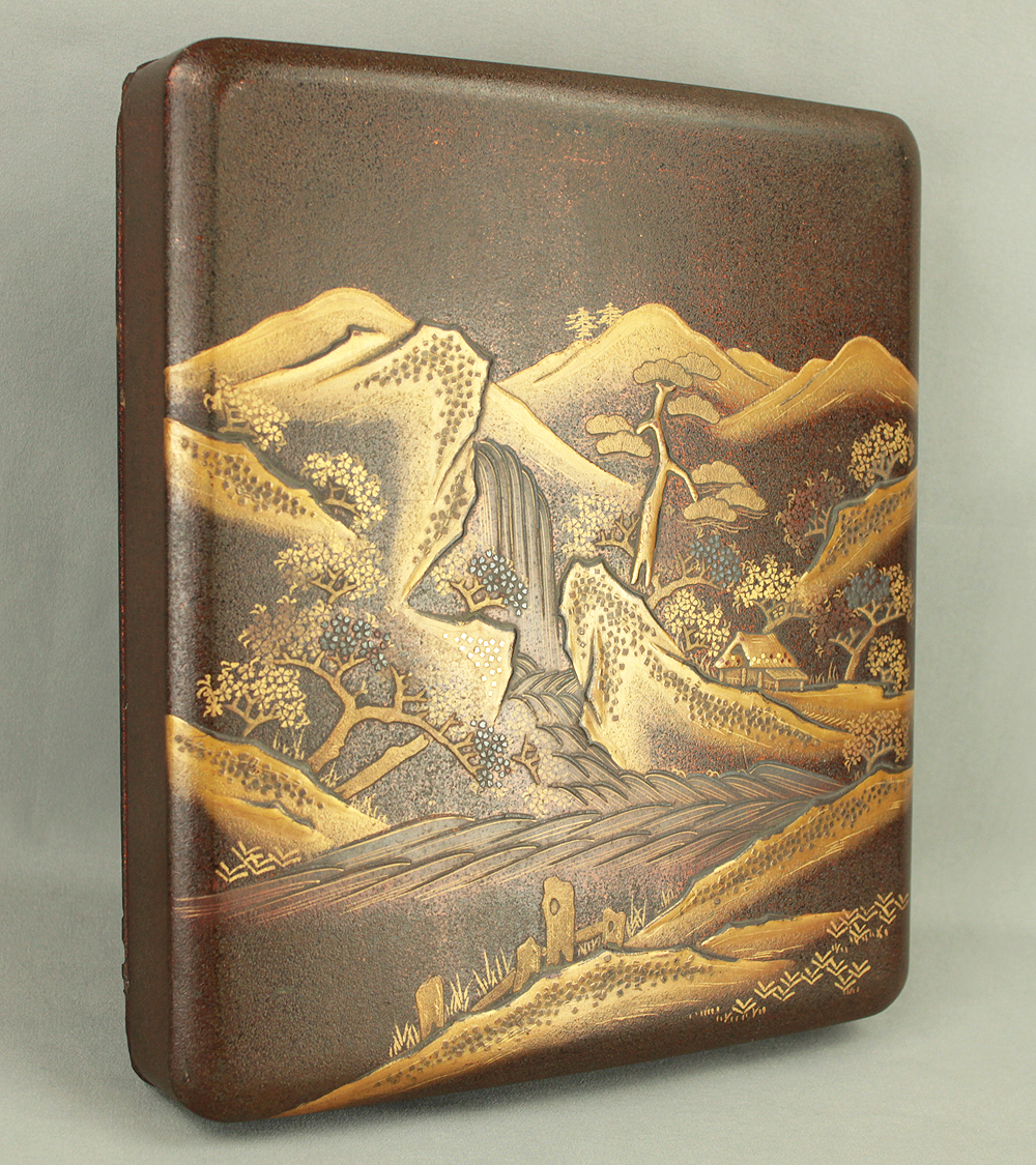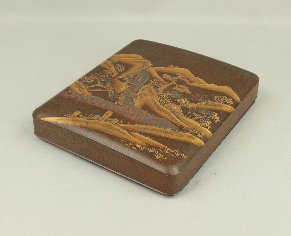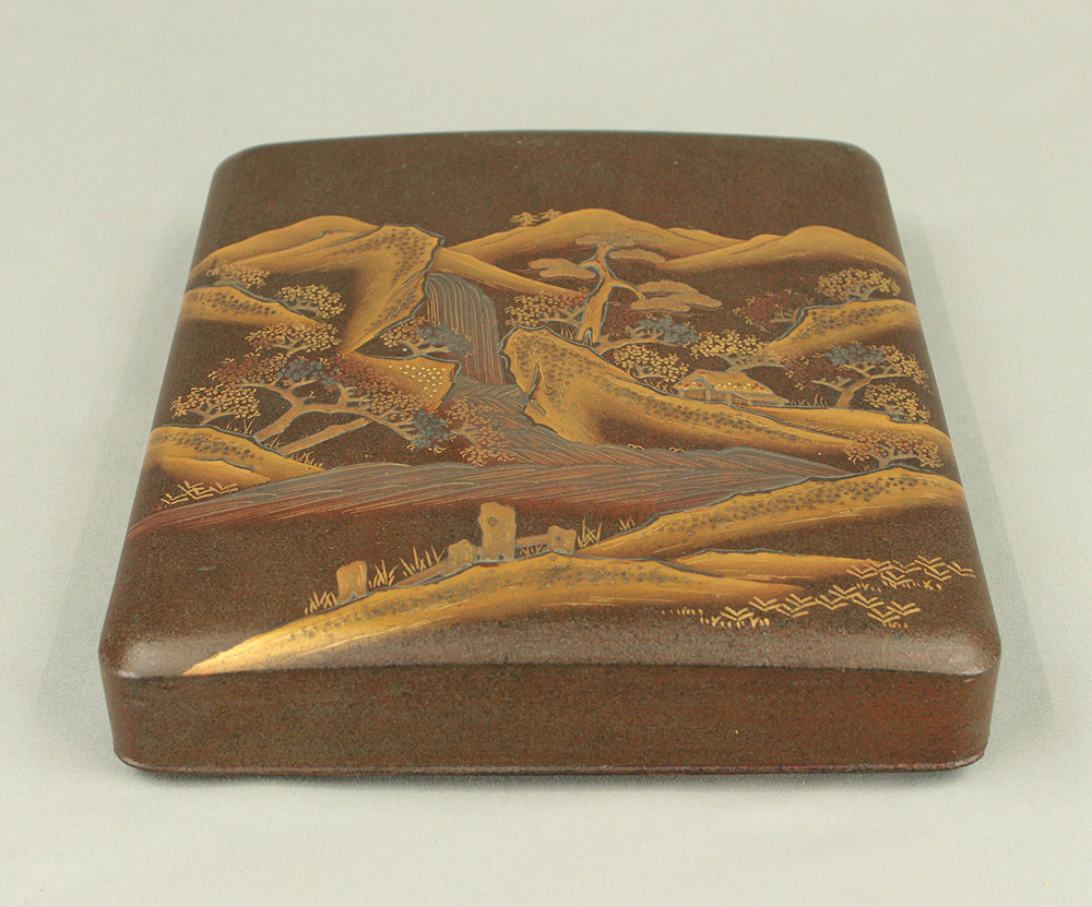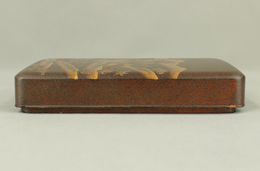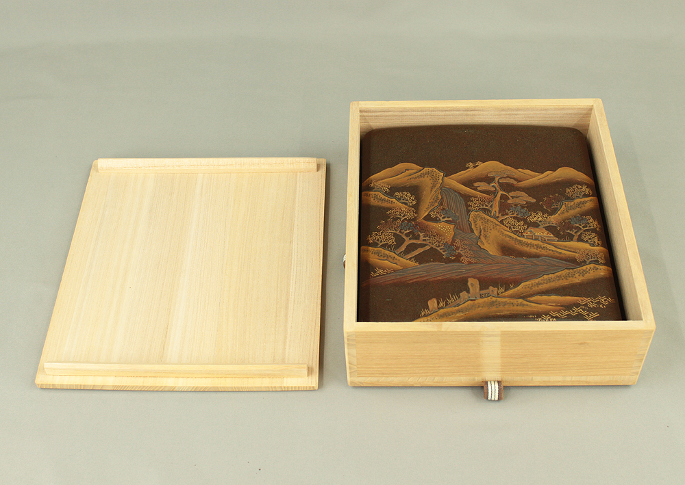 Gold Lacquer Makie Suzuribako (Inkstone Box) Nashiji Makie Landscape and Phoenix with Box VA664