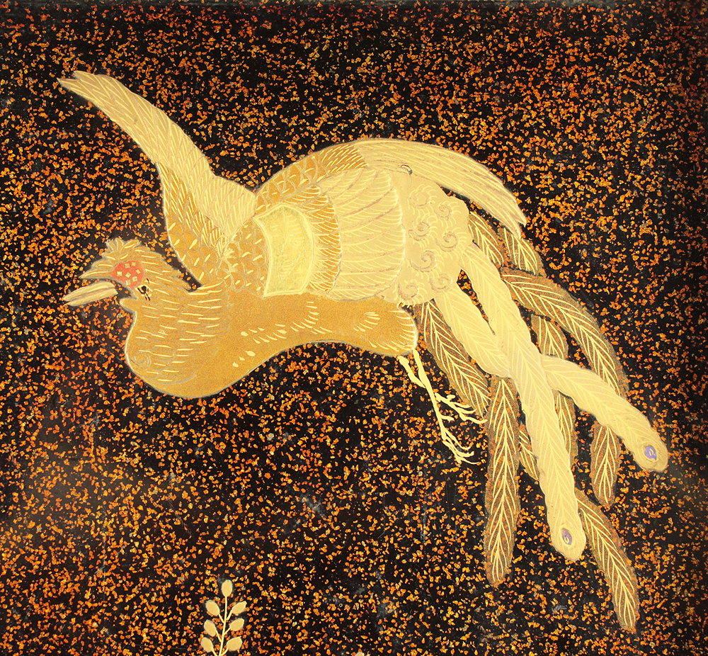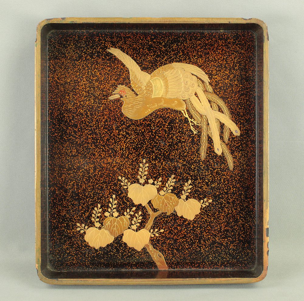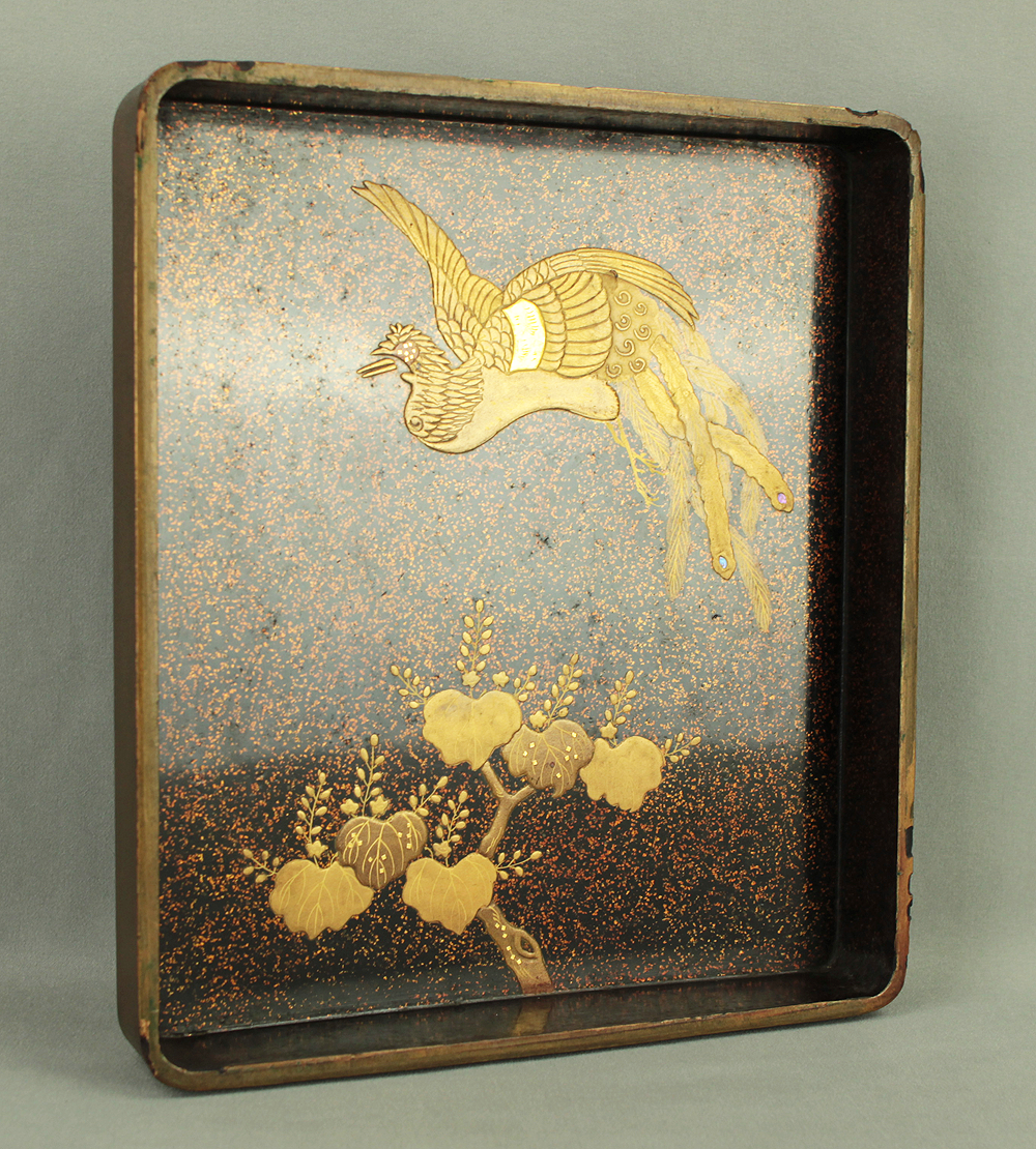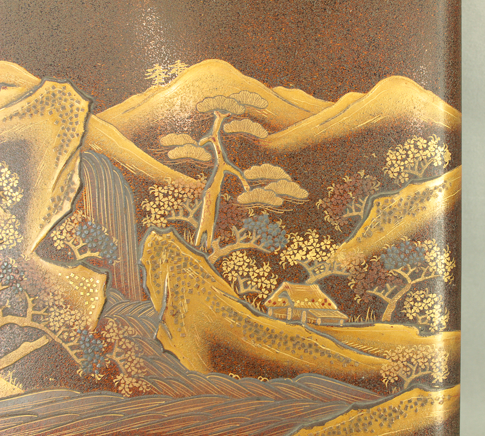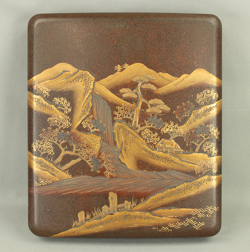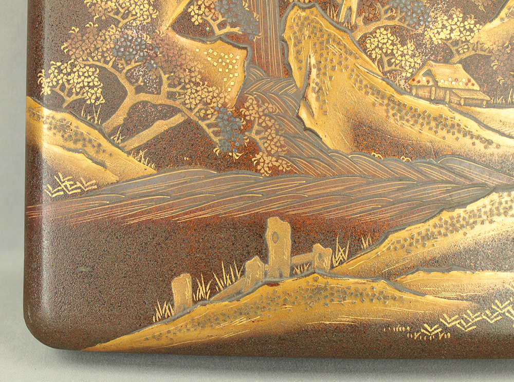 Gold Lacquer Makie Suzuribako (Inkstone Box) Nashiji Makie Landscape and Phoenix with Box VA664