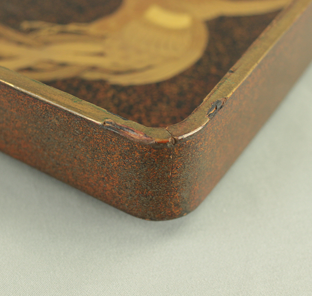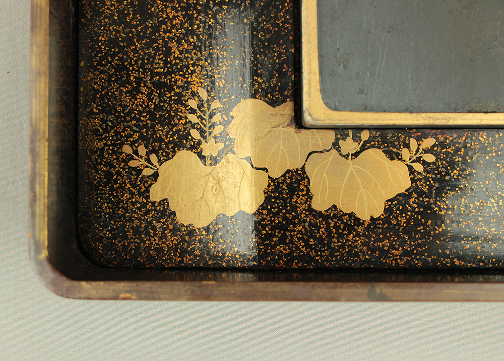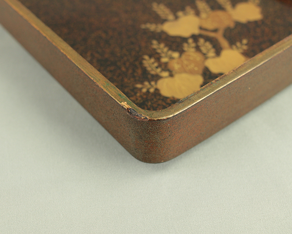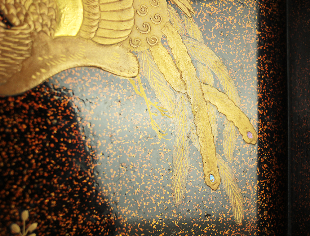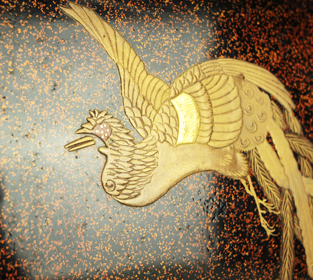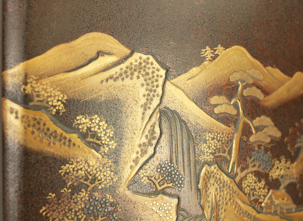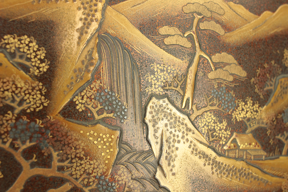 Nashiji Makie is that Nashi-ji powder is sprinkled on the lacquered area, and then further layers of lacquer are applied and polished out.