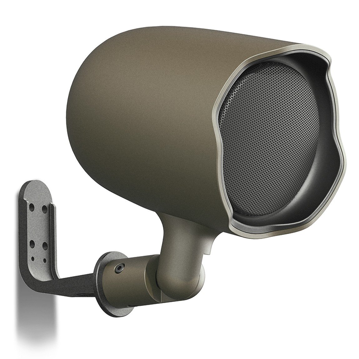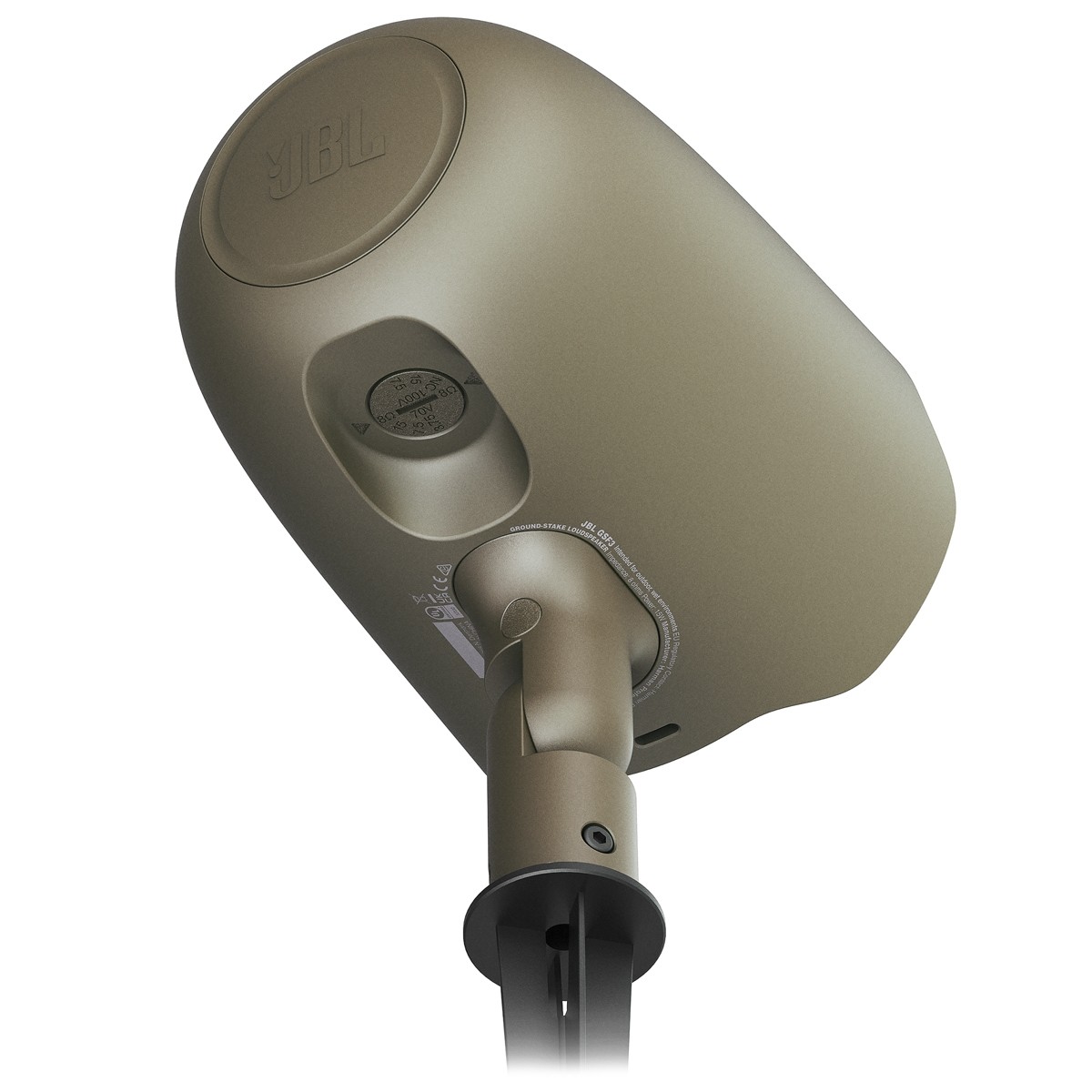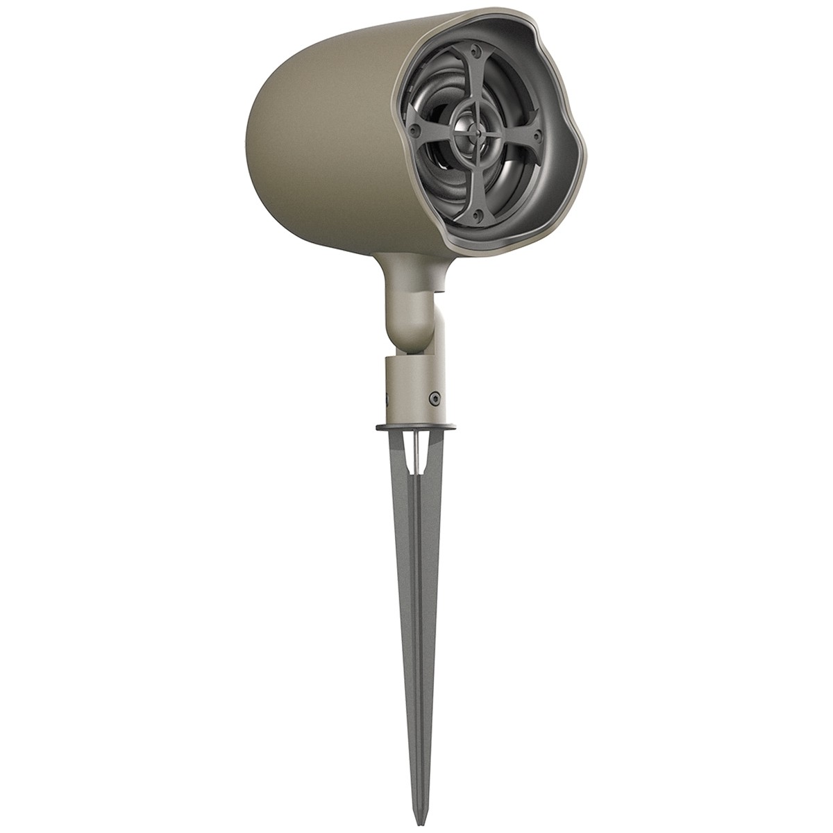 Versatile mounting options include an included ground stake for in-ground installation and an L-bracket for secure mounting on either horizontal or vertical surfaces. A low-profile, unobtrusive speaker, the GSF3 blends right into its surroundings, and is aimable for precise coverage via an adjustable hinge. Available in hunter green and tan finishes.
