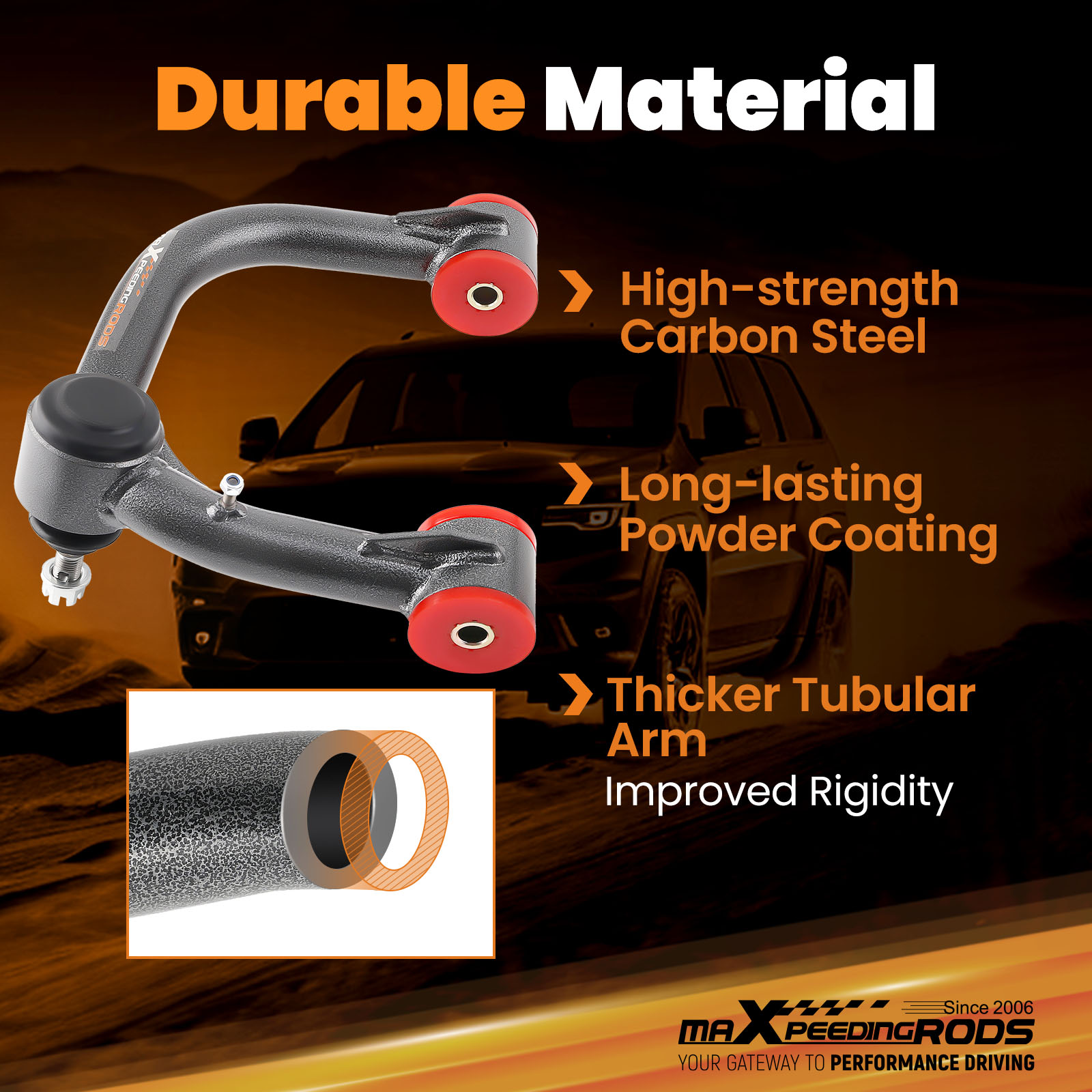 - Our control arms are carefully designed to provide first-class alignment, customizable chassis height, and excellent handling for your vehicle