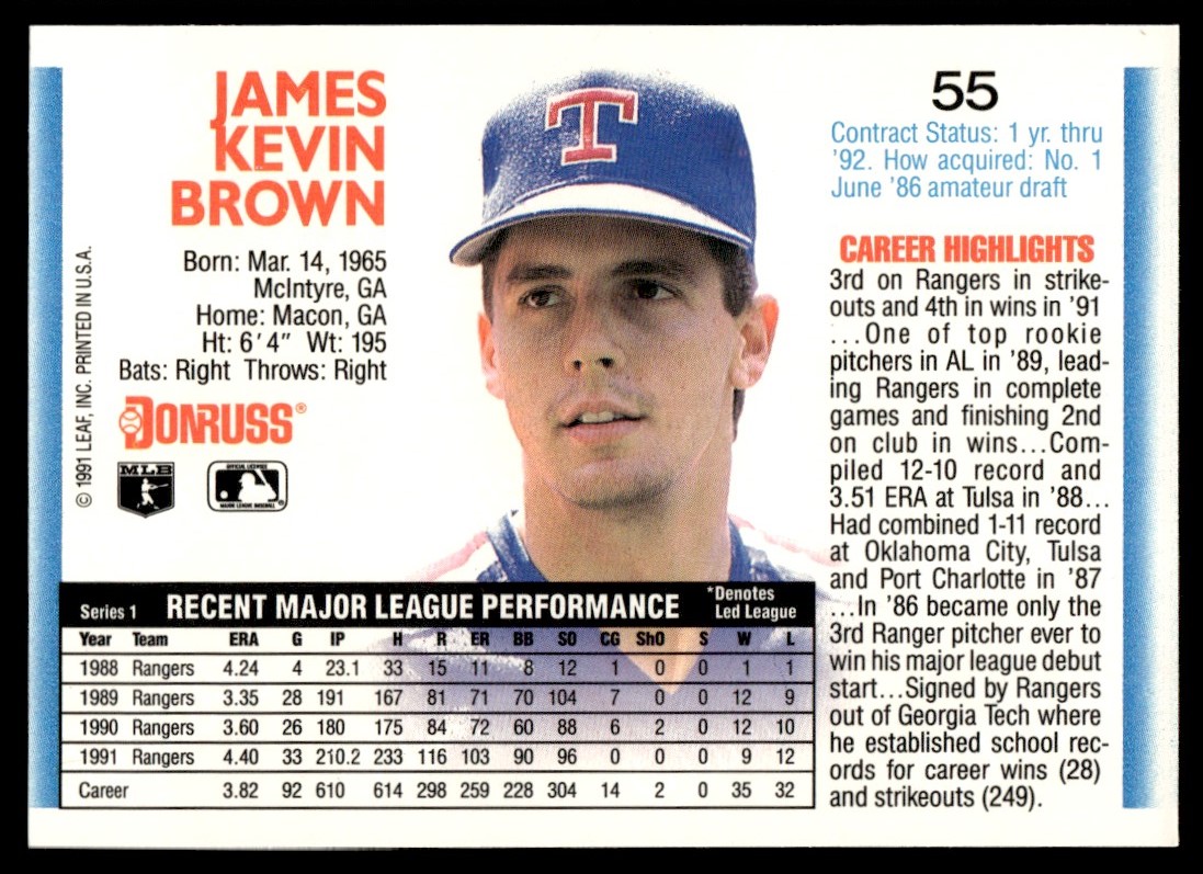 | 1992 Donruss Kevin Brown Texas Rangers #55 |