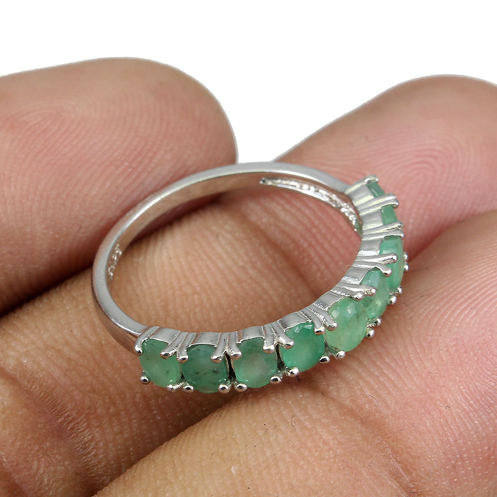 Unheated Oval Emerald 4x3mm 14K White Gold Plate 925 Sterling Silver Ring Size 8