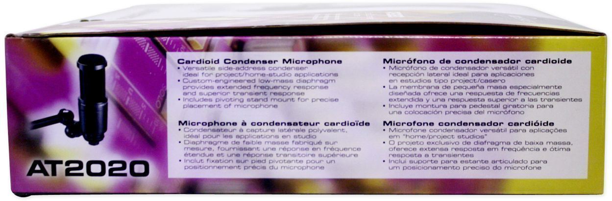 Audio-Technica's stringent quality and consistency standards set the AT2020 apart from other mics in its class. Its low-mass diaphragm is custom-engineered for extended frequency response and superior transient response. With rugged construction for durable performance, the microphone offers a wide dynamic range and handles high SPLs with ease. The AT2020: the new standard for affordable side-address studio condensers.