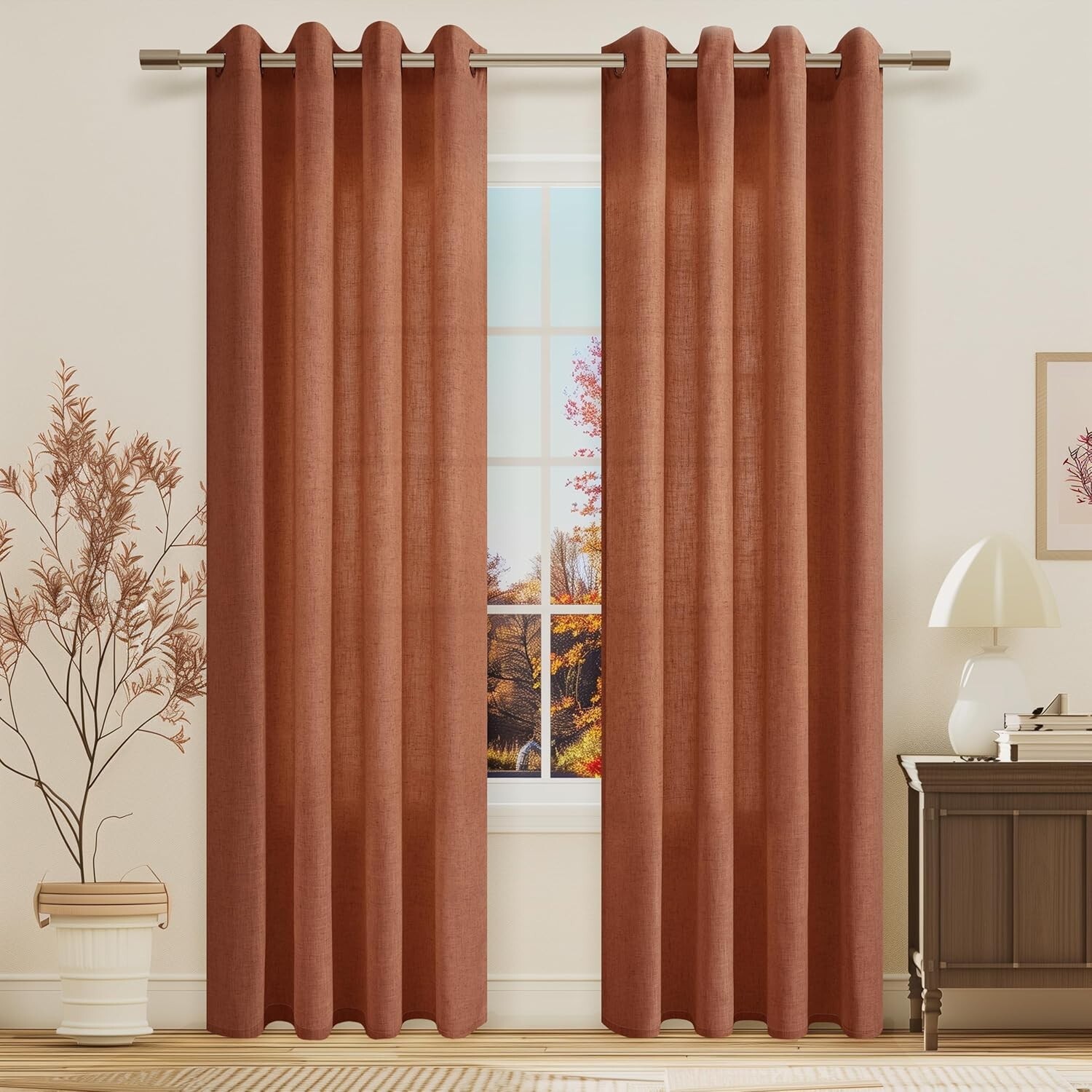 Versatile Light Filtering Terracotta Curtains 84-Inch - 2 Panels for All Rooms