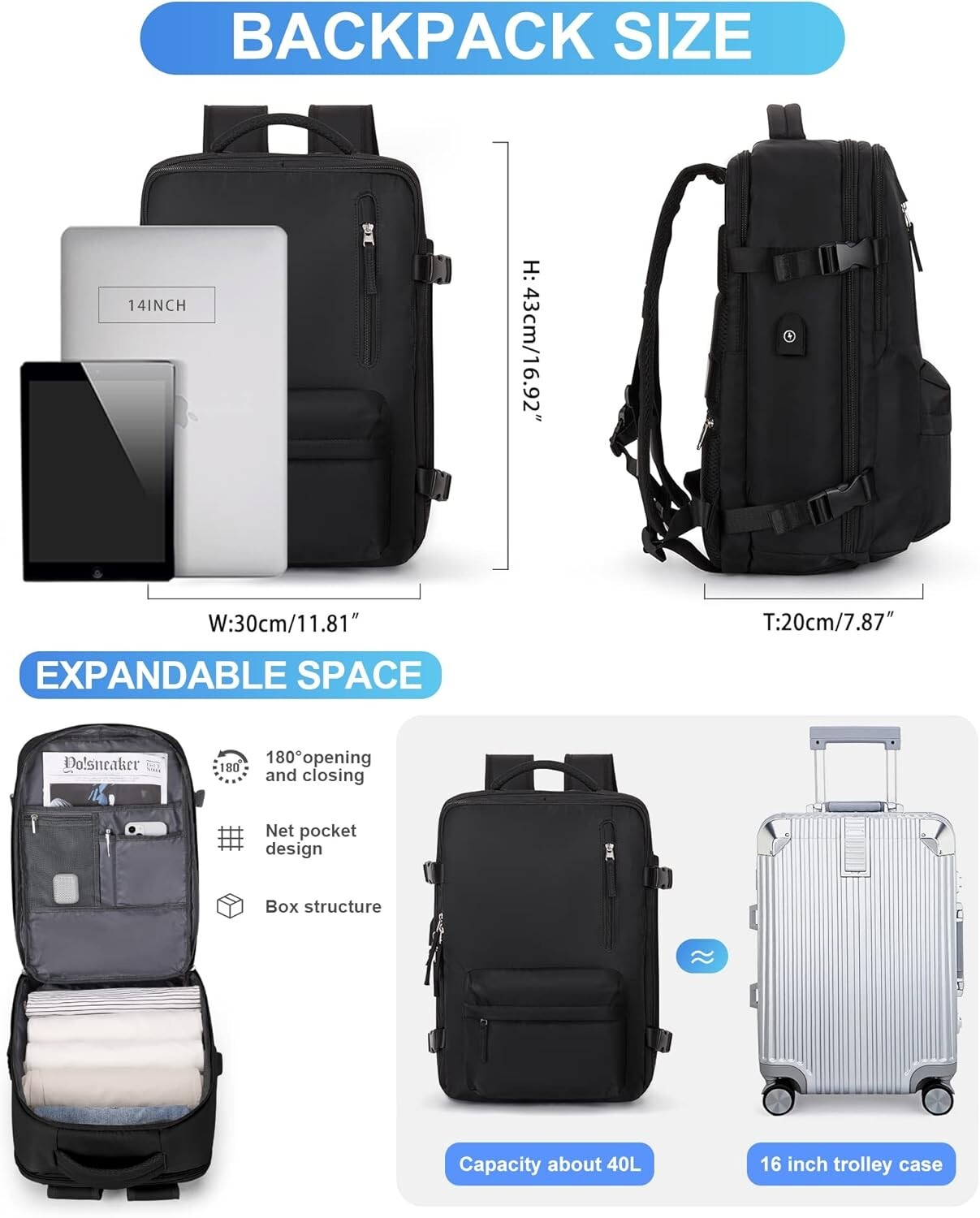 Airline Approved: Carry-on backpack designed for easy travel, fitting snugly under the seat on flights, and saving you on checked luggage fees.