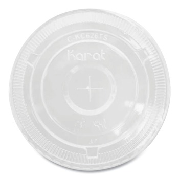 Karat Plastic Flat PET Lids with Straw Slot Fits 32 oz. Cold Cups - Clear (500/Carton)