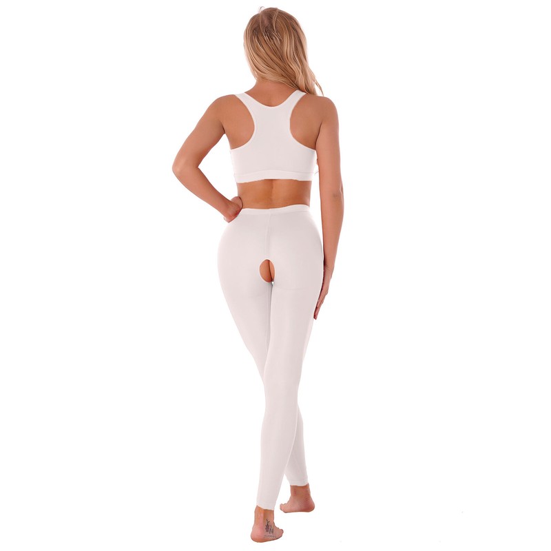 Women See-through Lingerie Suit U Neck Racer Back Vest and High Waist Open Crotch Pants Set.