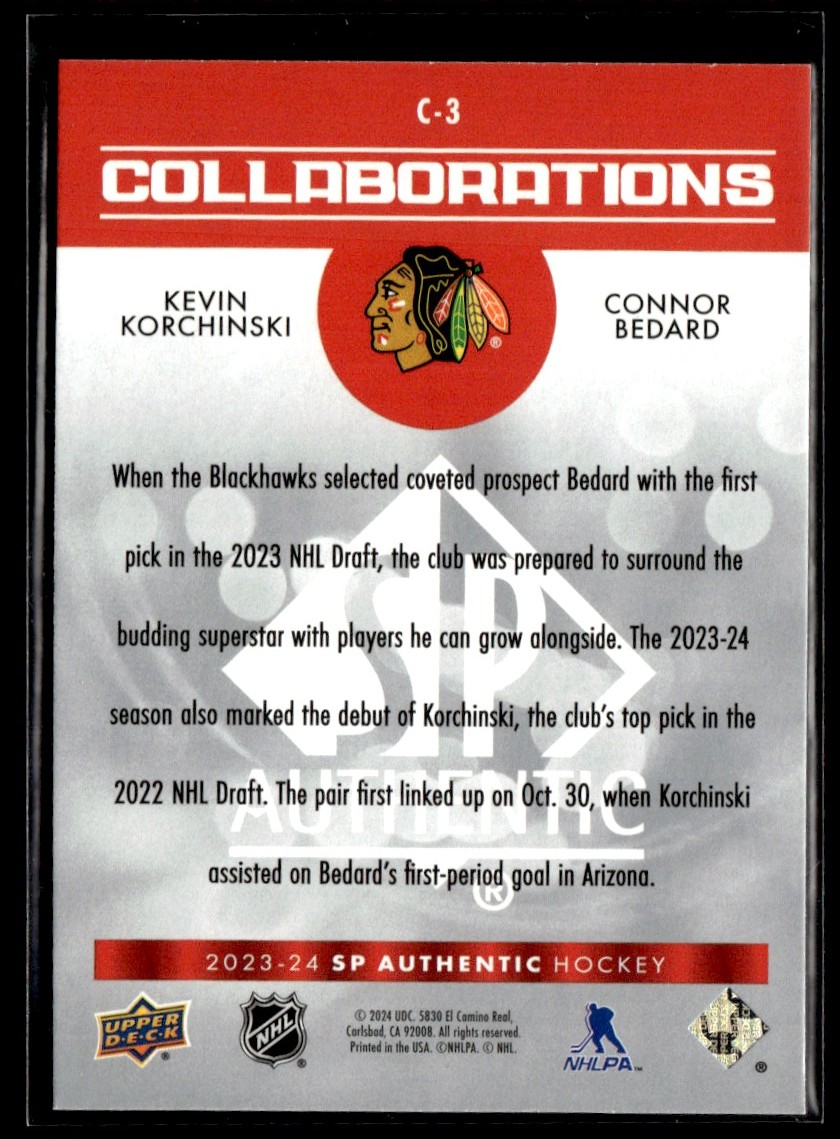 | 2023-24 SP Authentic Collaborations Kevin Korchinski / Connor Bedard - #C-3 6 |