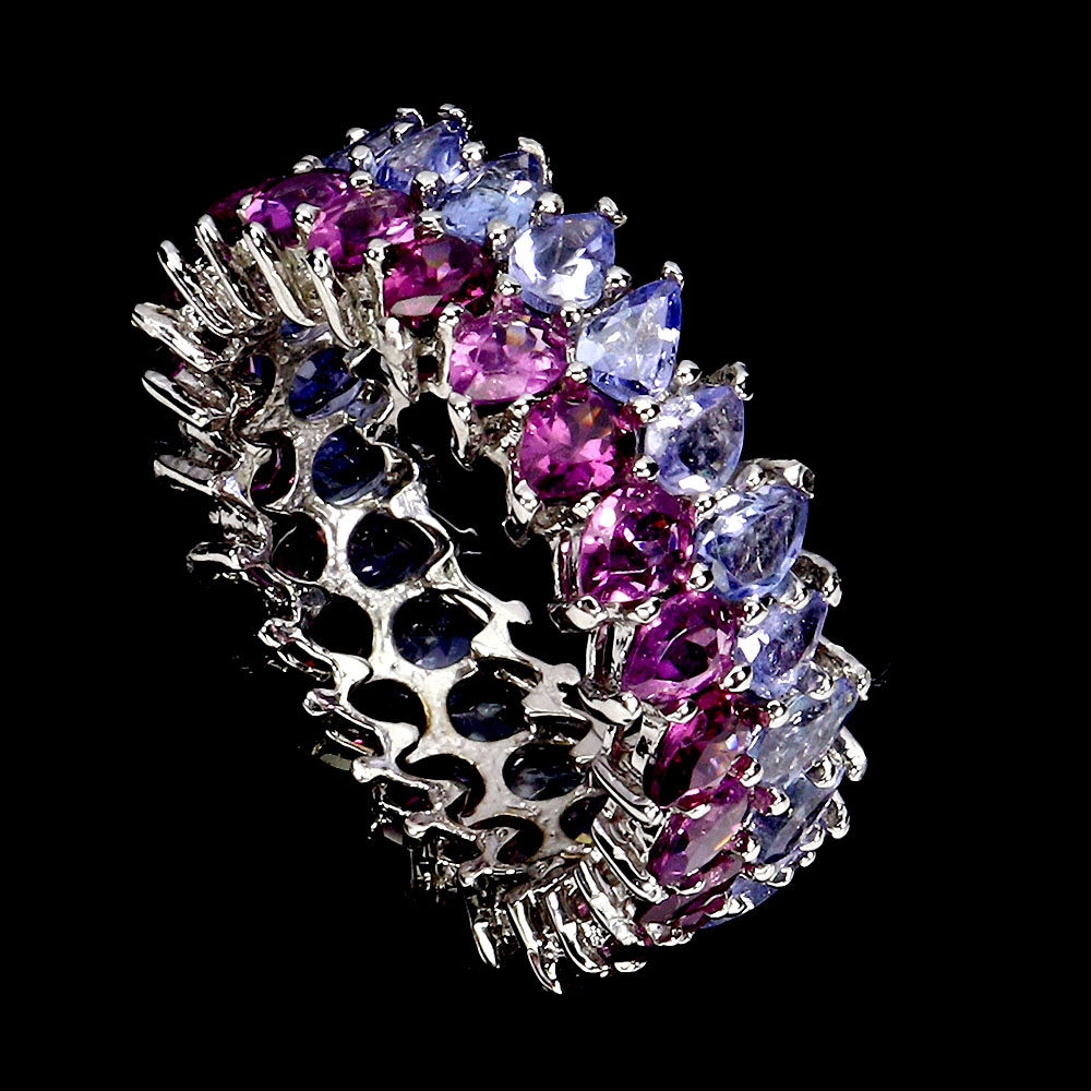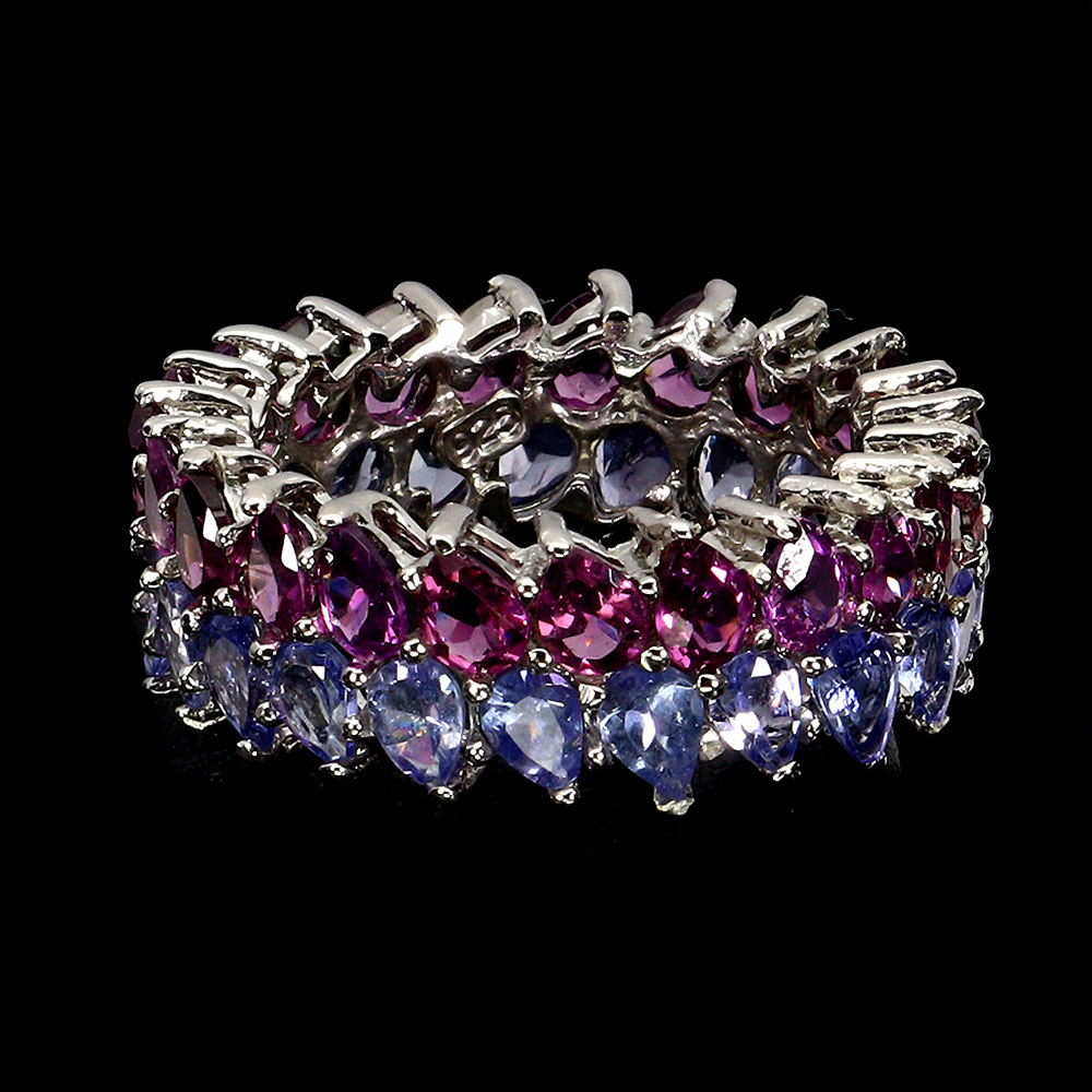 Valentine 925 Silver Ring Pear Rhodolite Garnet Tanzanite Gemstone Jewelry