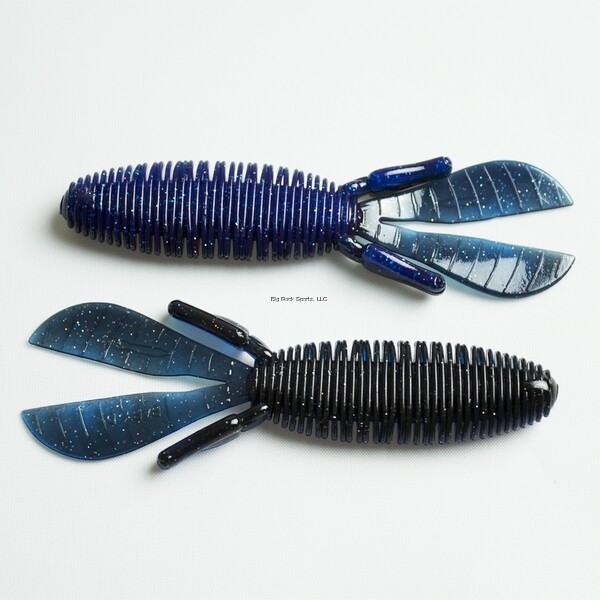 The tails sail when left connected or flap wildly when separated. The body is thinner where the hook comes out for easy hook sets but has a thicker head so the bait stays on the hook. The D Bomb plunges into the thickest cover or hangs on to your big jig for added appeal. The fine ribs on the body move a lot of water as the bait is presented, but also allow the bait to scrunch up and get out of the way of the hook so you land more bass. The body also thins out where the hook rests against the bait, further ensuring you stick a bass that has bitten.