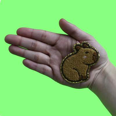 This adorable patch features a cute capybara sitting calmly with a blushing glitter design, showcasing the beauty of this charming mammal. Add it to your collection and ignite your love for this species!