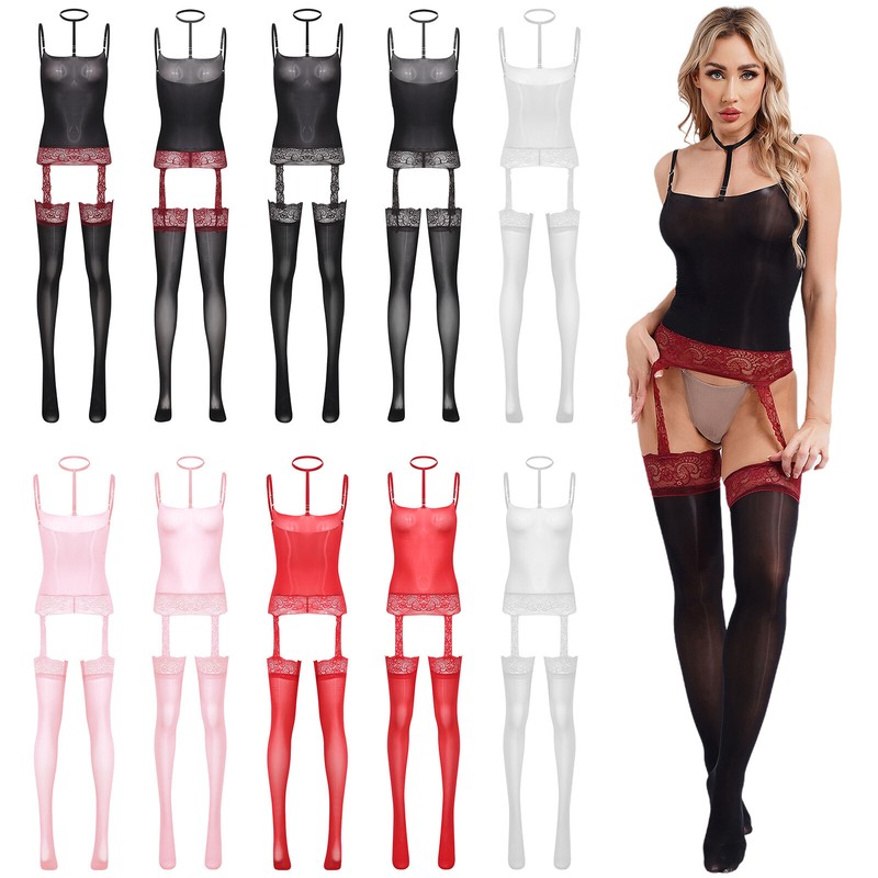 Sheer mesh and crotchless design, perfect show your charming curve and makes you attractive to your lover.
