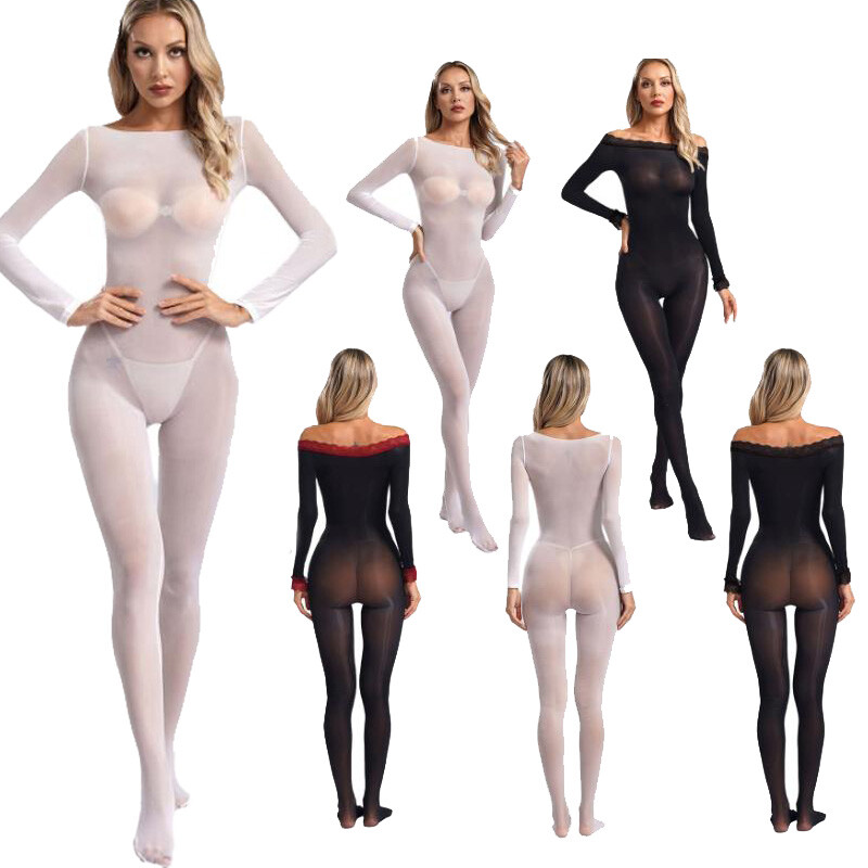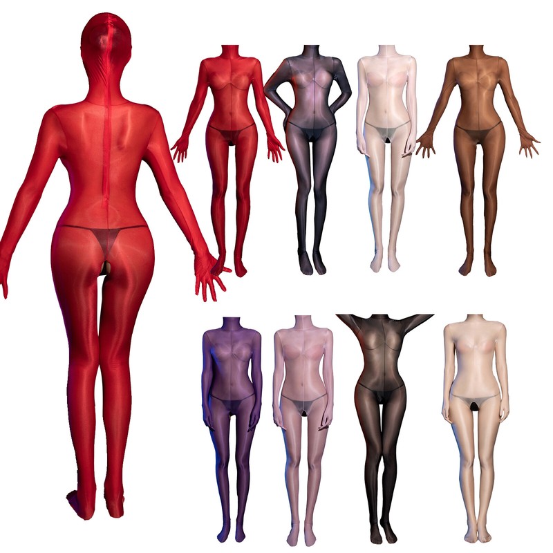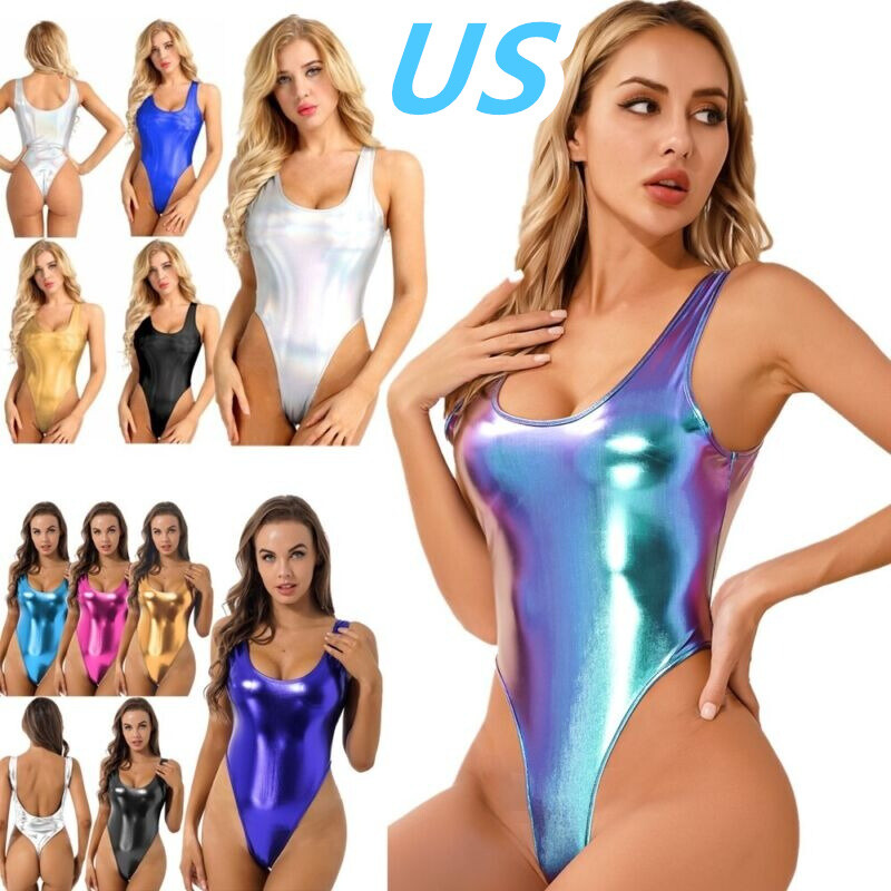 Women’s one-piece wetlook bodysuit leotard, zipper crotch design.