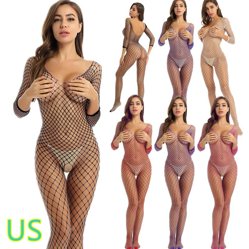 Womens See-through Mesh Crotchless Bodysuit Hollow Out Halter Backless Leotard Lingerie Nightwear.