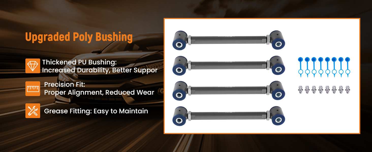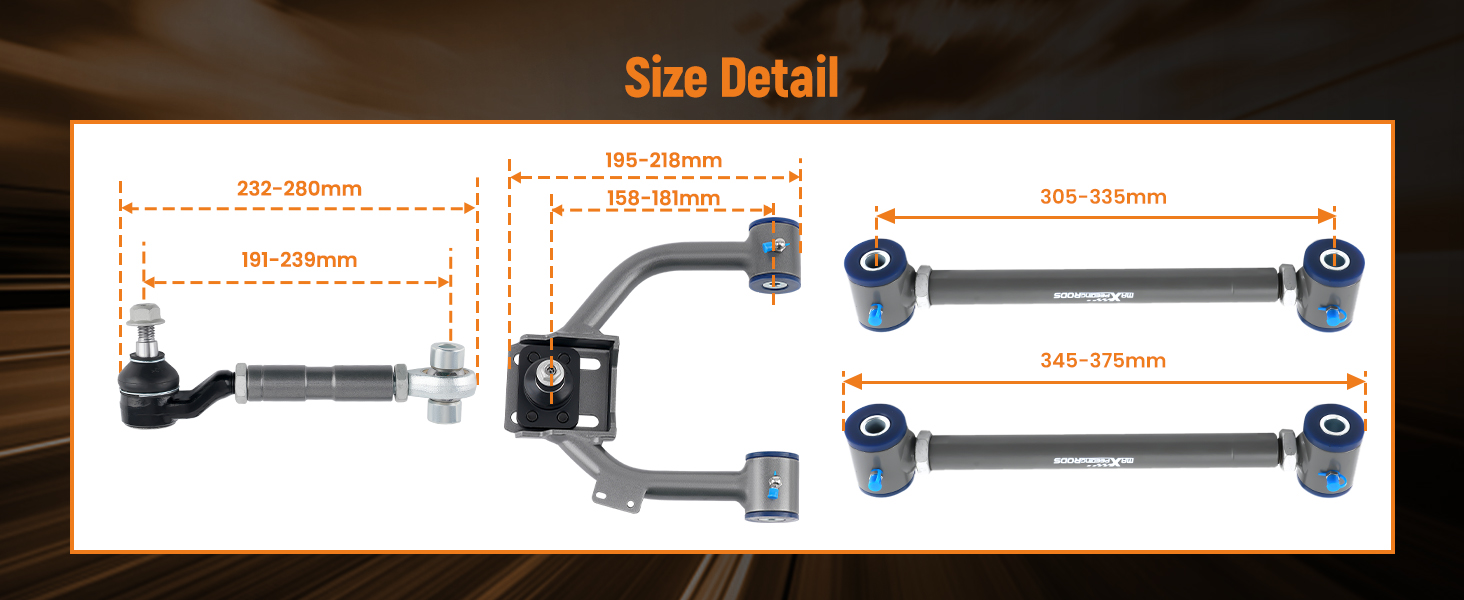 4.Our control arms are meticulously engineered to deliver top-notch alignment, customizable ride height, and exceptional handling for your vehicle.