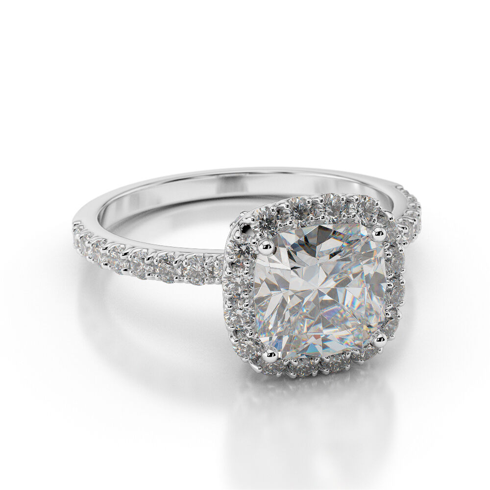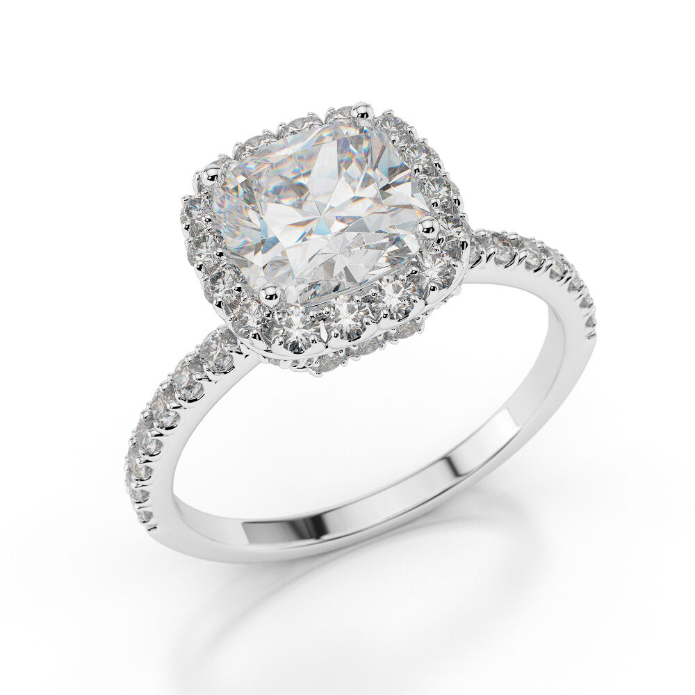 1 2/3 Carat D-F VVS1 Brilliant Moissanite Engagement Ring Cushion Cut 14K White