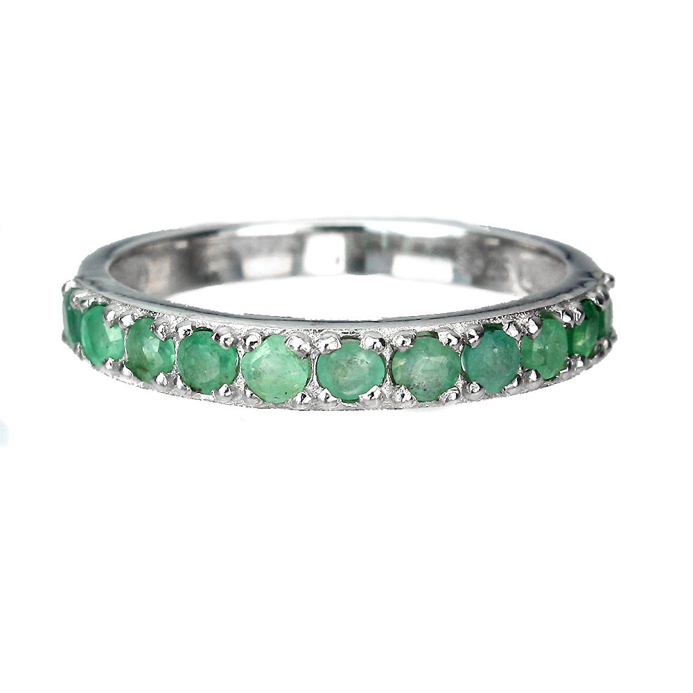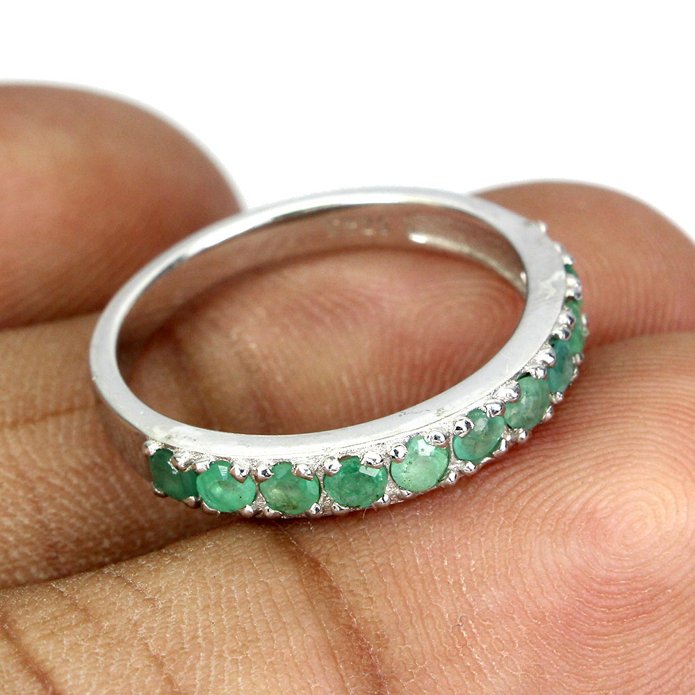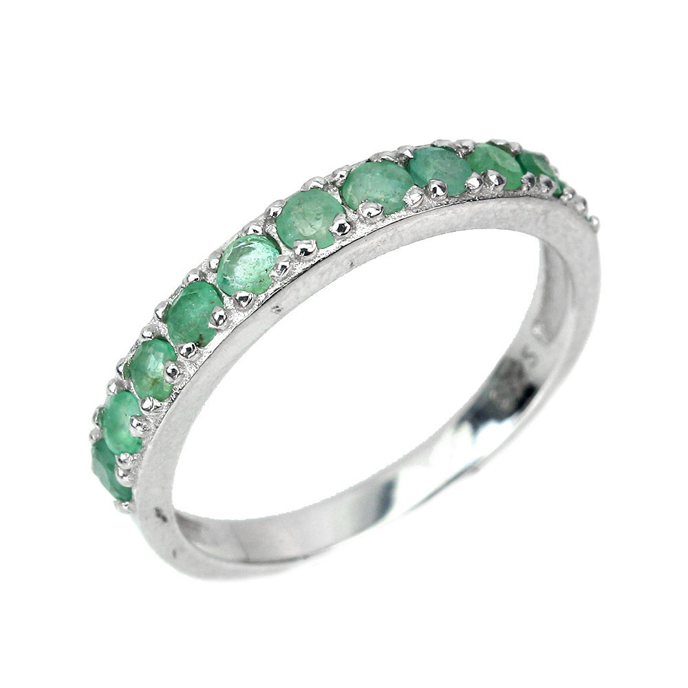Unheated Round Green Emerald 2.5mm 14K White Gold Plate 925 Sterling Silver Ring