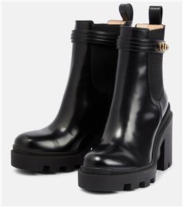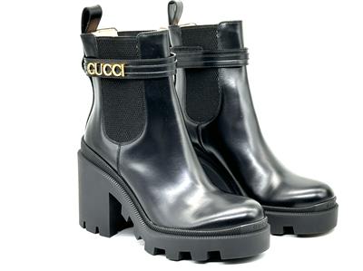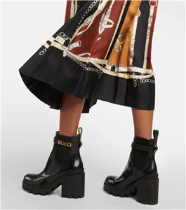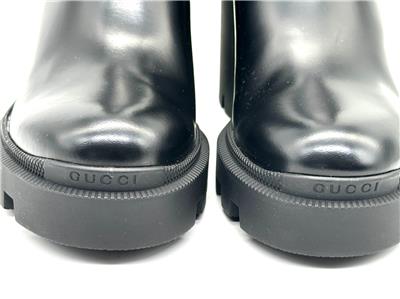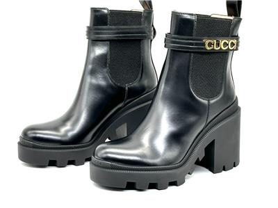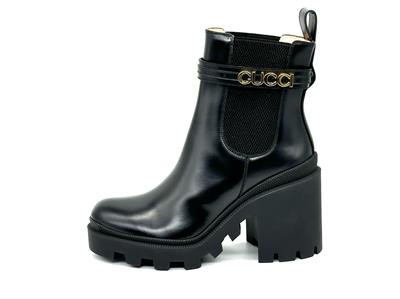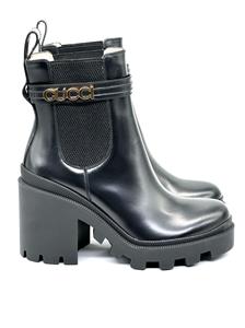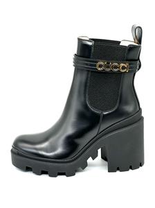- Gucci Trip smooth leather Chelsea boots with goldtone signature logo strap accent