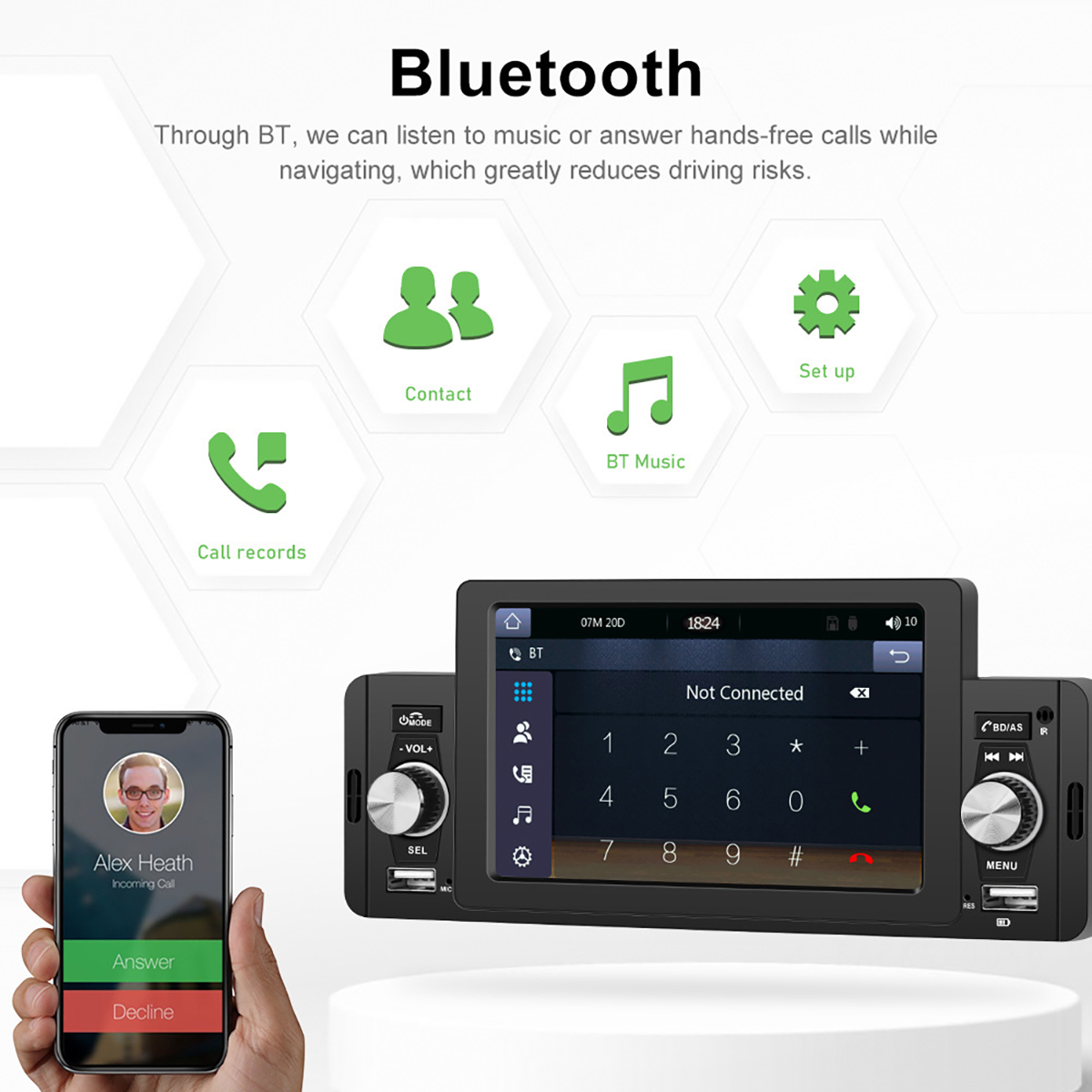 5. Bluetooth function: dual pass Bluetooth version 4.2/support incoming and outgoing calls/synchronous address book/support mobile music playing/support voice function.