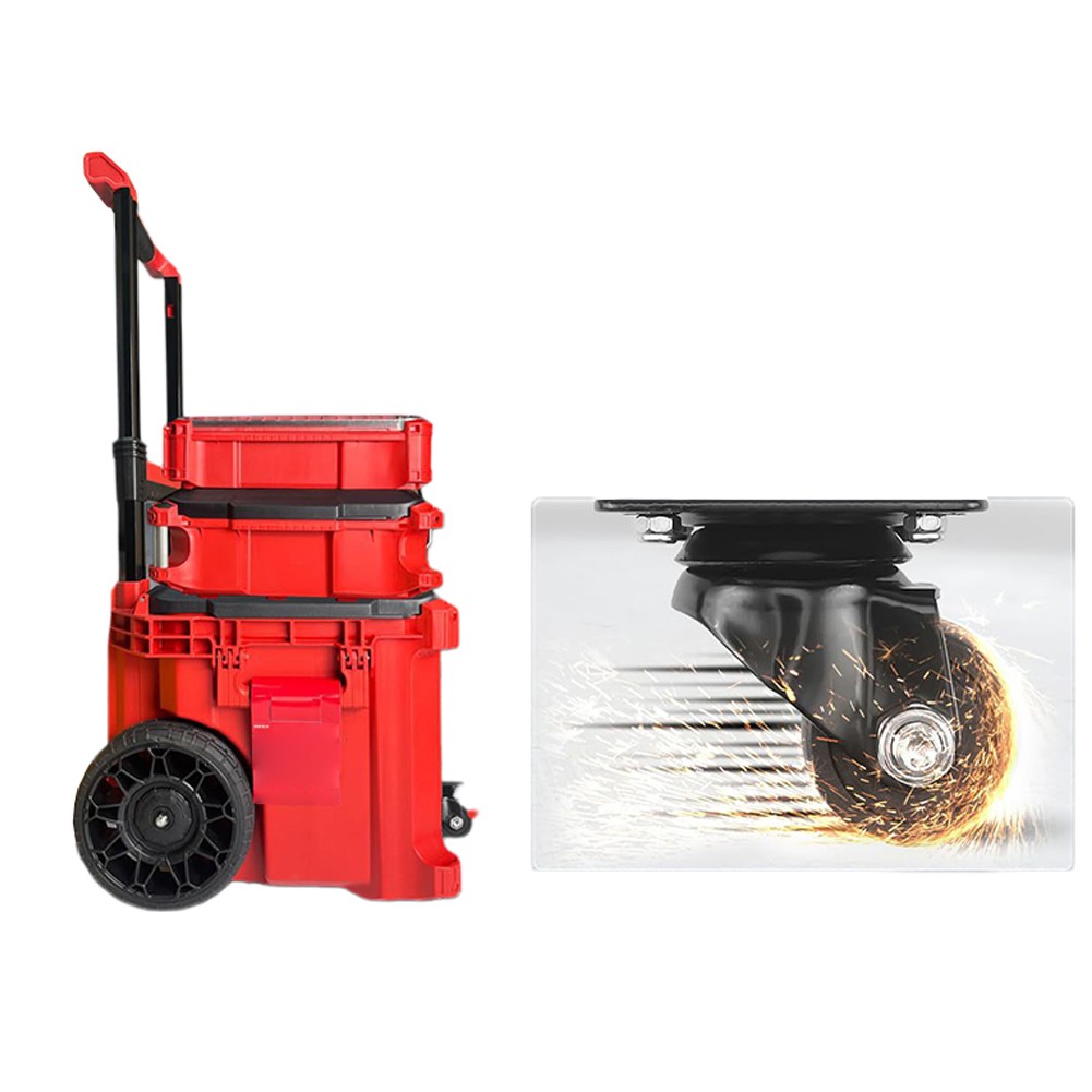 *Smooth Maneuverability: Designed for optimal navigation, these wheels enable the toolbox to roll alongside the user, making it easier to transport in crowded or uneven spaces without dragging.