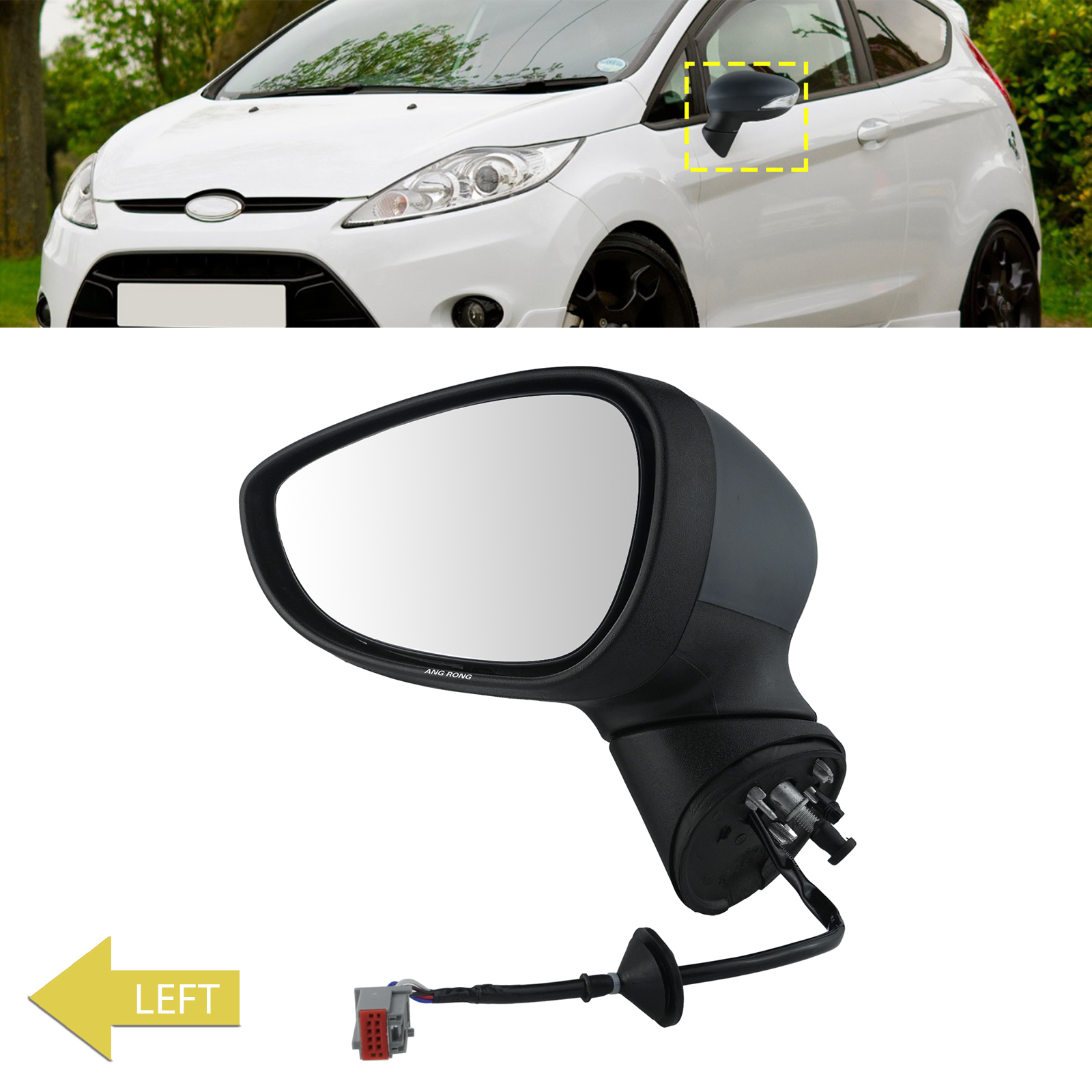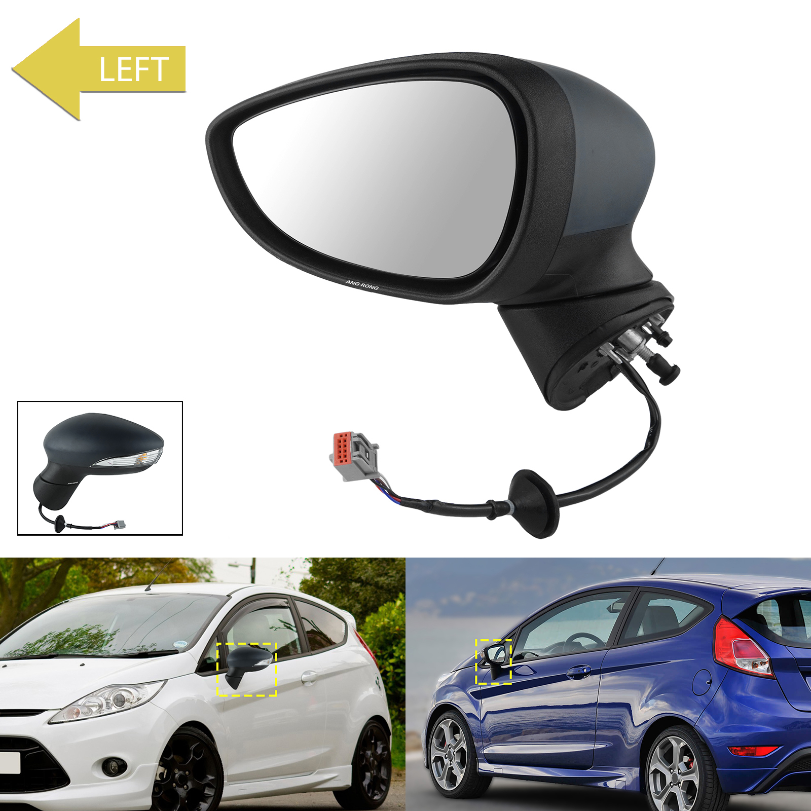 1pc Left Side Black Electric Wing Door Mirror Indicator Primed For Ford Fiesta MK7 Hatchback 2008-2012