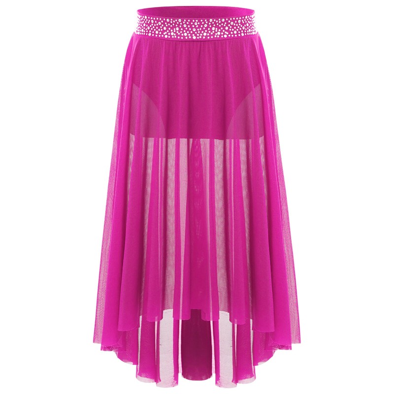 High-low irregular mesh skirt with side slit and flowy design shows the softness and beauty of dance.