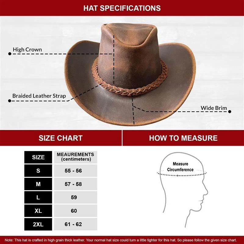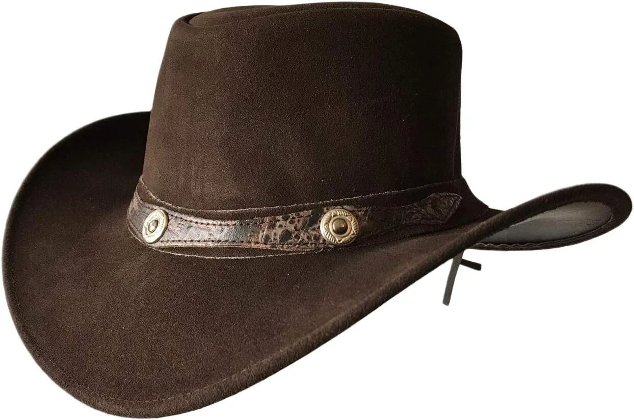 Hat's Leather Top Quality: Our Australian bush leather hat is exclusively made with the finest genuine leather and premium reinforced stitching. This handmade down-under Hat will give you the best level of durability and comfort. Produced to the highest standards of premium craftsmanship making our leather cowboy hats for men stand alone and lasting for decades.