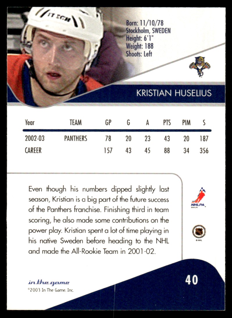 | 2003-04 In The Game Toronto Star Kristian Huselius Florida Panthers #40 |
