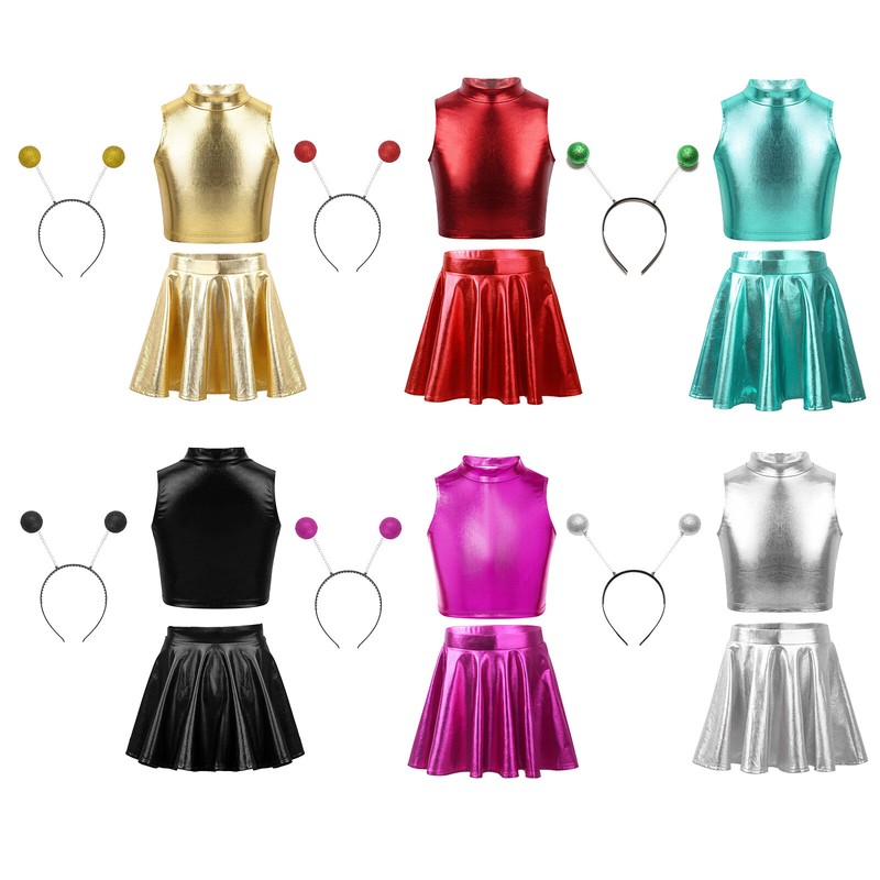 Kids Girls 3Pcs Set Metallic Dancewear Party Wear Dance Outfits Performance
