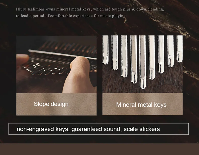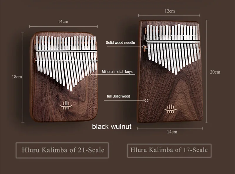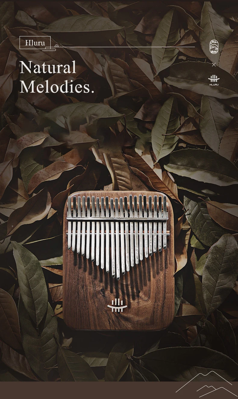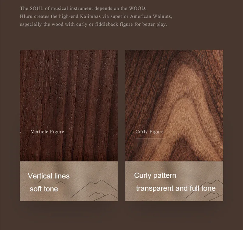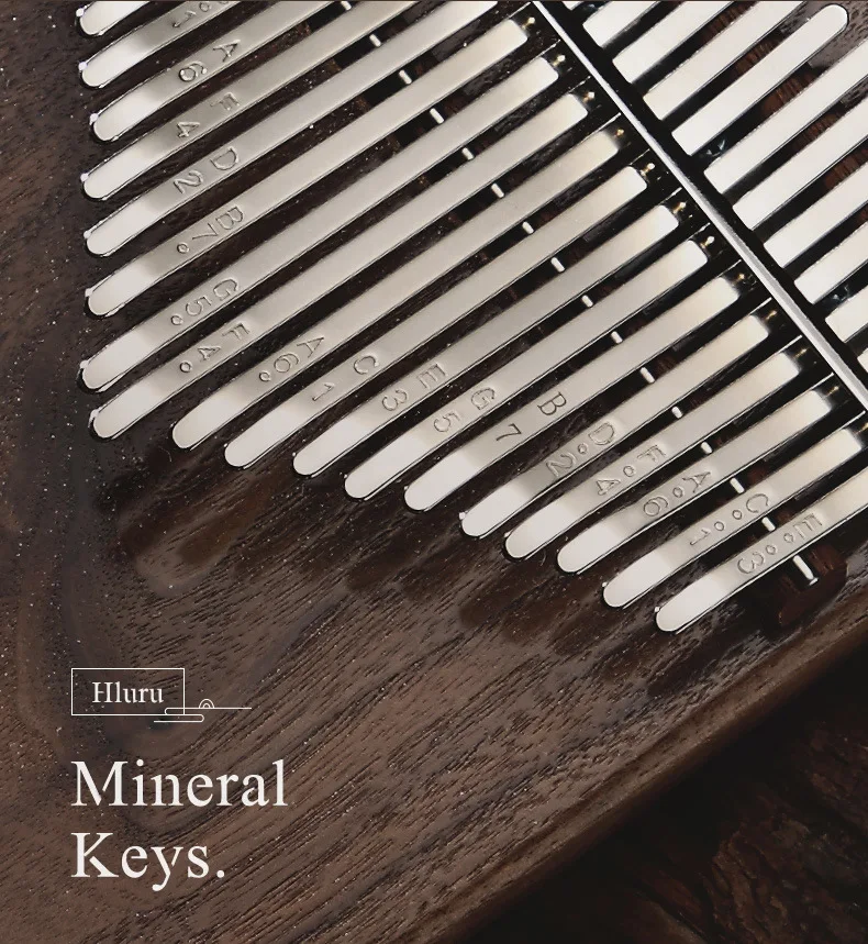 【The soul of an instrument originates from wood】Hluru high-end Kalimba is made of full veneer solid wood, with the "tiger grain wood" in black walnut wood, The texture is natural and gorgeous, the structure is delicate and even, the timbre is richer and more transparent, the high pitch has a longer duration, and the performance is more agile.