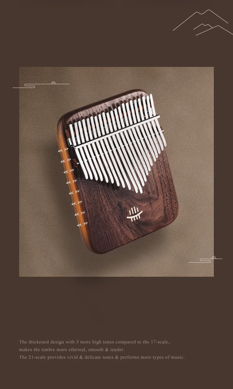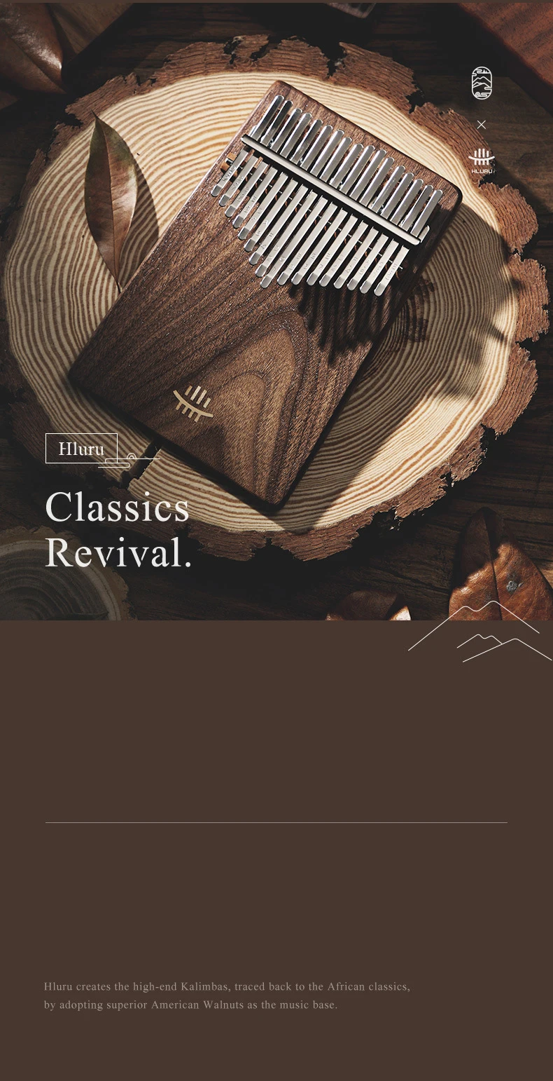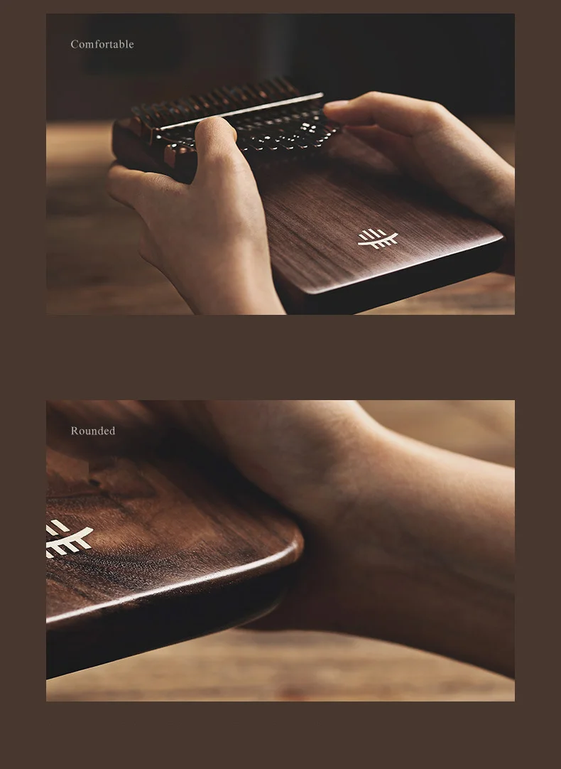 【The soul of an instrument originates from wood】Hluru high-end Kalimba is made of full veneer solid wood, with the "tiger grain wood" in black walnut wood, The texture is natural and gorgeous, the structure is delicate and even, the timbre is richer and more transparent, the high pitch has a longer duration, and the performance is more agile.
