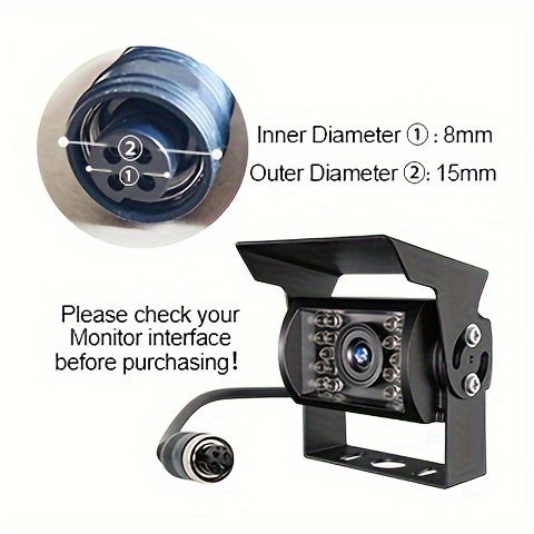 The backup camera for truck is using the standard GX12 or M12 4-pin connector. Before purchasing, please confirm your monitor or your wires system is compatible with GX12 or M12 4-pin connectors. Otherwi
