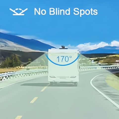The camera at the back offers a very wide field of view, up to 170°, which helps in detecting blind spots that are not visible in the rearview mirror while driving. This contributes to a safer driving experience for the driver.