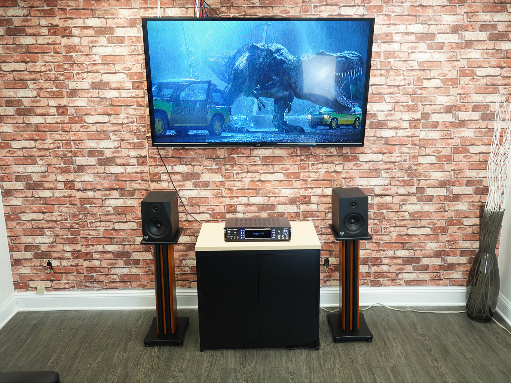 The Rockville SS36 and SS28 are the most premium speaker stands we make. These are built out of rock-solid wood. They are not hollow inside. These can withstand a weight of 100 lbs. and they will be super sturdy without the need to add any sand inside of them. The design of them is also more premium with cool accents to really make your set-up look impressive.