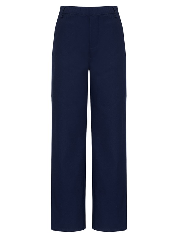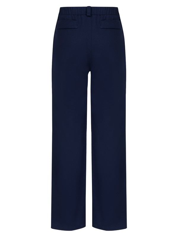 Elastic waistband with belt rings, two side pockets and two faux pockets at back.