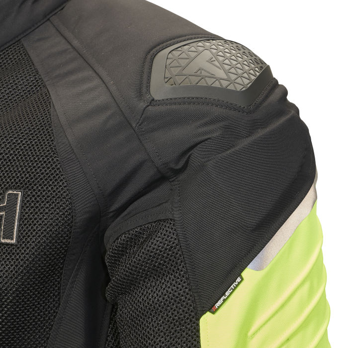 • Breathable mesh lining to aid air circulation and increase ventilation • Air mesh directing maximum air flow through main body • Hem adjustment •Cuff adjustment • TriTech performance outer fabric • Airflow mesh • Removable D3O® protectors, Shoulder and Elbow (included) • Option to insert a D3O® back protector (sold separately) • Option to insert a D3O® chest protector (sold separately) • Black TPU molded shoulder panels • Dark reflective inserts on sleeve and on logos • Two outer pockets • High-Viz Side panels • Soft inserts These styles feature a connection zip designed to connect to compatible pants/jackets in this collection. The smaller jackets (XS-M) are designed to be compatible with the smaller pants (28-32) and the larger jackets (L-XXXL) are designed to be compatible with the larger pants (34-42)