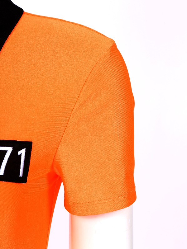 DE iEFiEL Erwachsene Damen Gefangenen Kostüm Kurzarm Sträfling Jumpsuit Karneval