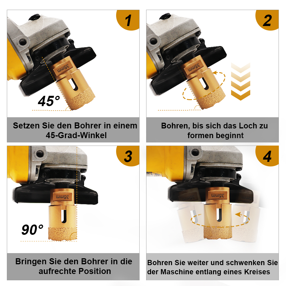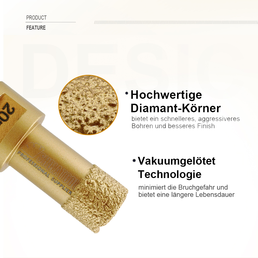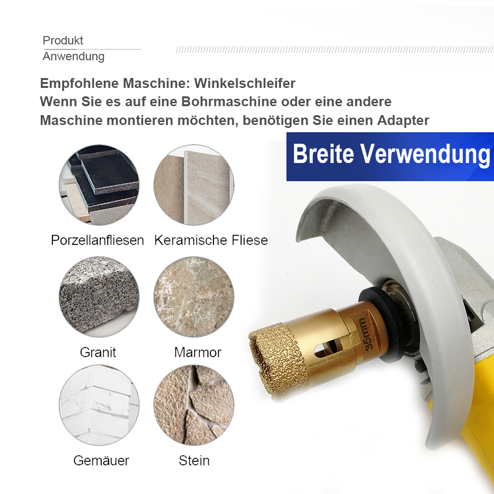 Anwendung: Trocken- / Nassbohren für Porzellanfliesen, Granit, Marmor, Stein, Mauerwerk, Ziegel ...