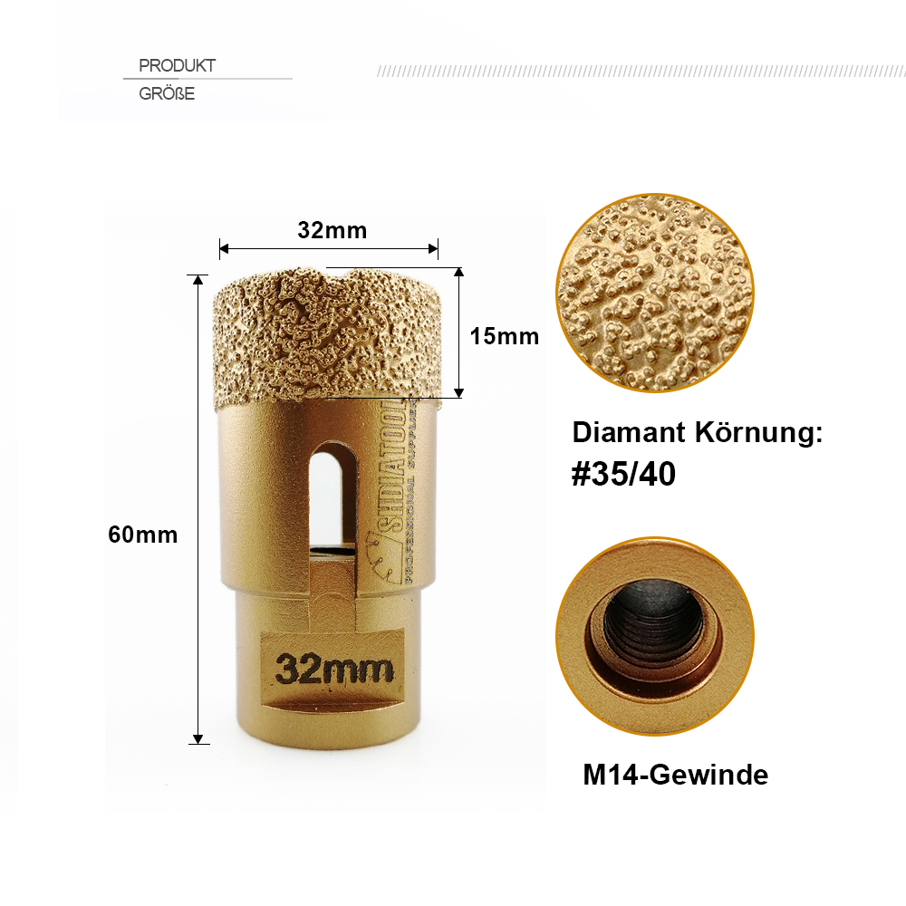 Artikel: 1 Stück Vakuumgelötete Diamantbohrkernbohrer mit 15 mm Diamanthöhe