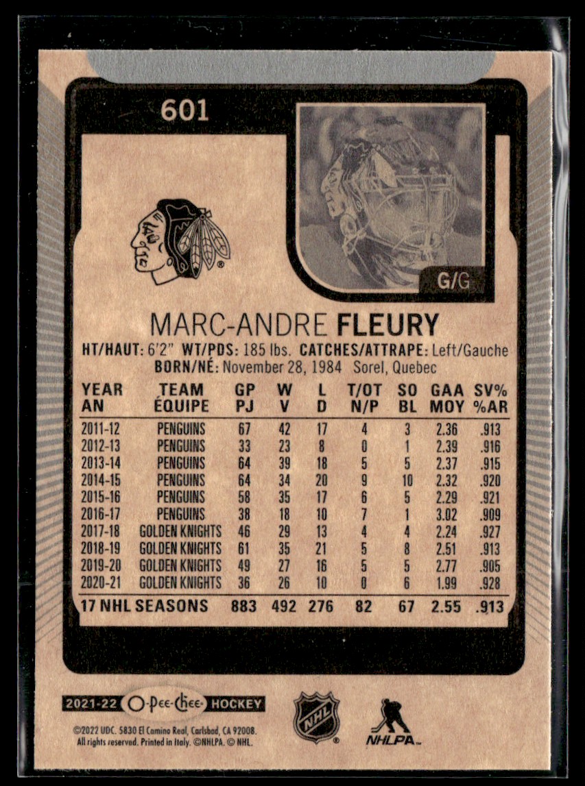 | 2021-22 Upper Deck 2021-22 O-Pee-Chee Update Marc-Andre Fleury #601 |