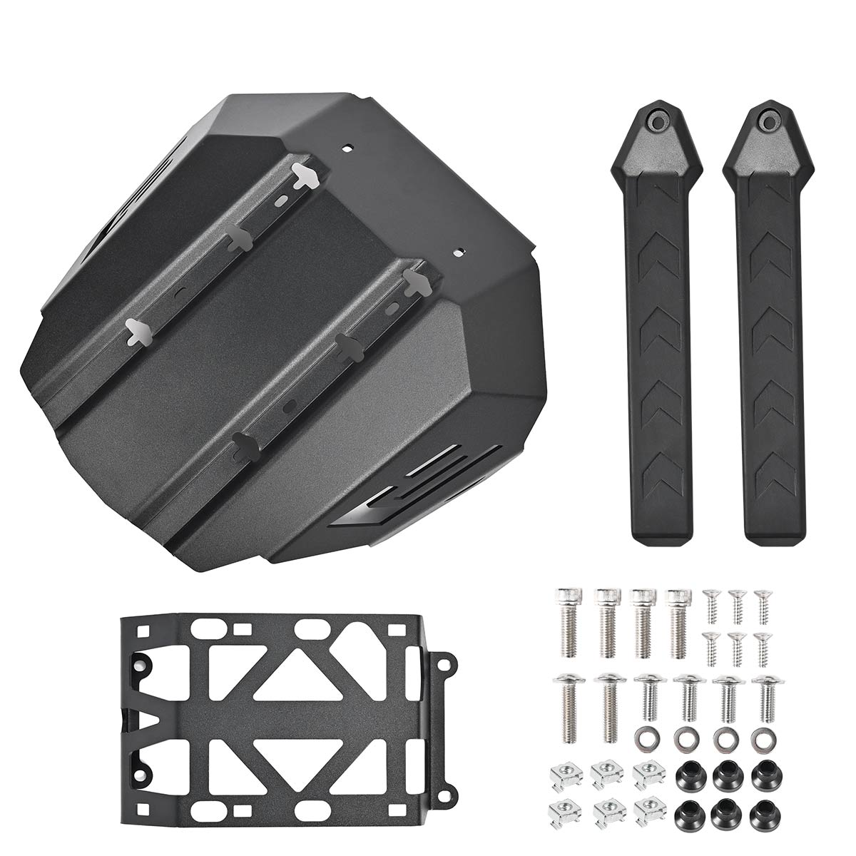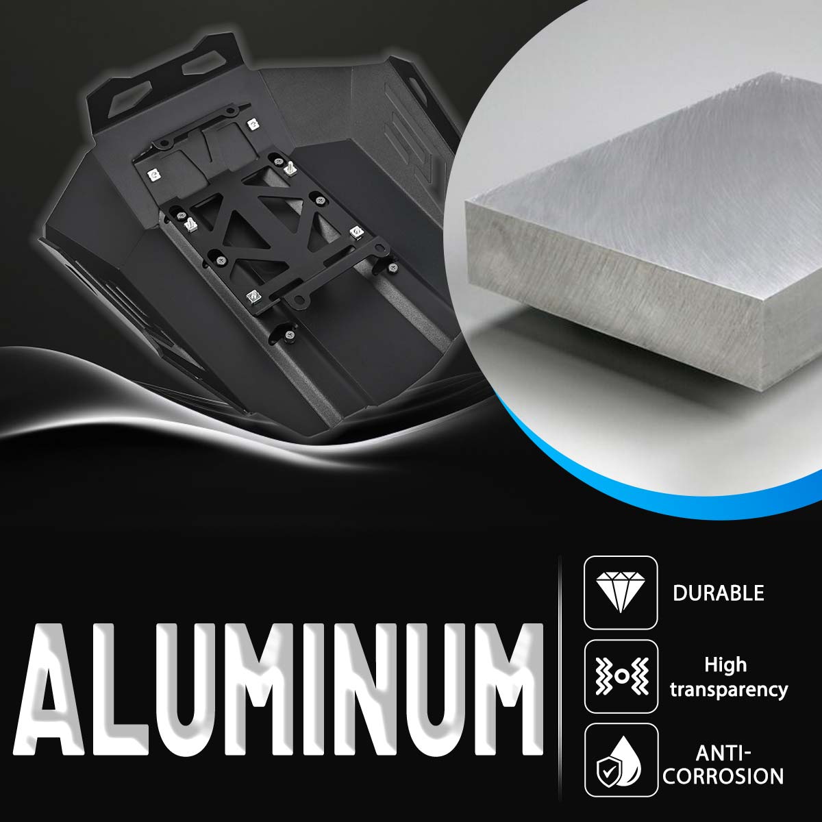 Our engine protection skid plate is made of high quality aluminum alloy + stainless steel