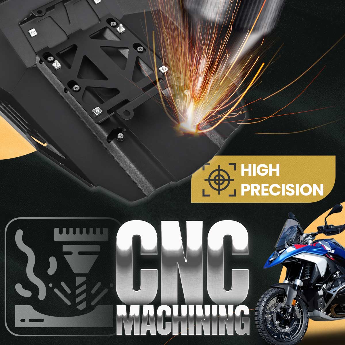 It provides a high level of protection for the engine, exhaust manifolds and exhaust lines on the underside of the bike, preventing damage caused by rocks, vibrations and collisions during intensive use