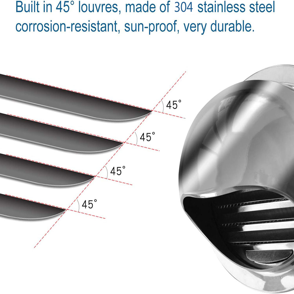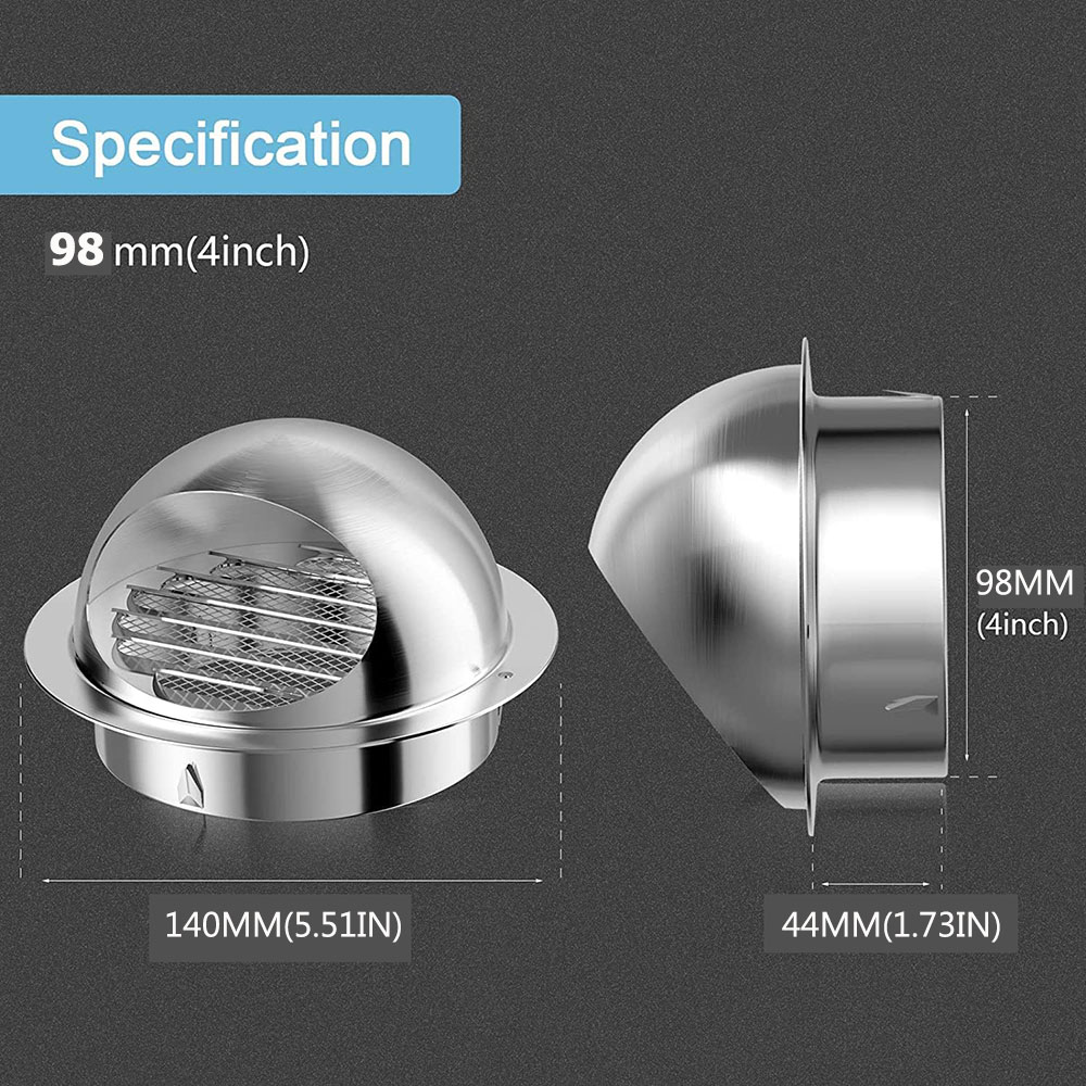 4in Duct Fan Soffit Air Vent 304 Stainless Steel Round Wall Outlet Grille Cover