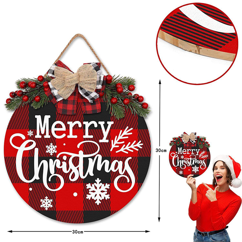 Merry Christmas Decorations Wreath, Merry Christmas Plaid Hanging Sign Rustic Wooden Holiday Decor for Front Door Porch Window Wall Farmhouse Indoor Outdoor Decorations (Merry Christmas)