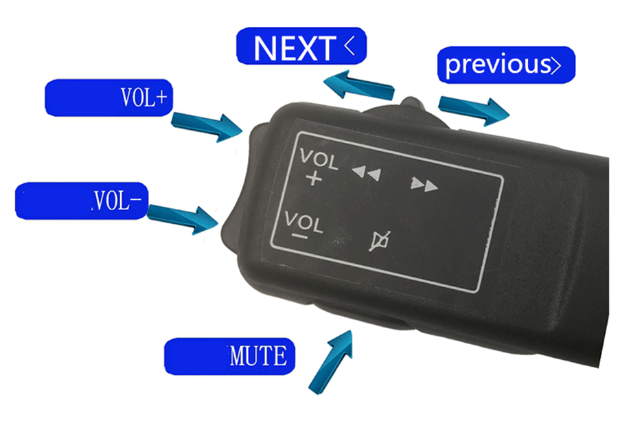 2. Mute , Volume , and Next/up program ( Music, video, Radio,bluetooth ... )