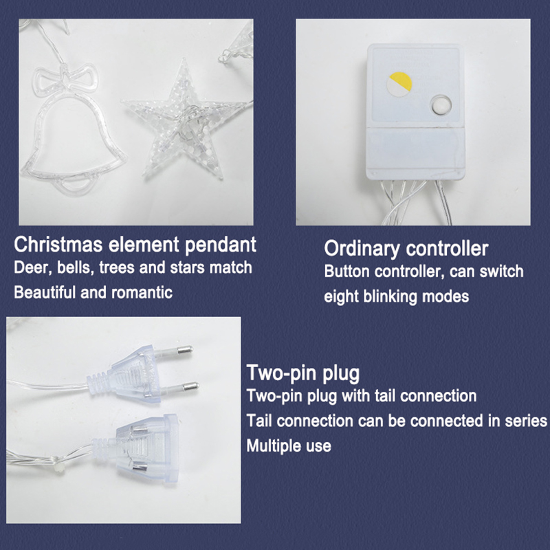 Light string pendant: Christmas deer*2, Christmas tree*2, Christmas bell*2