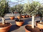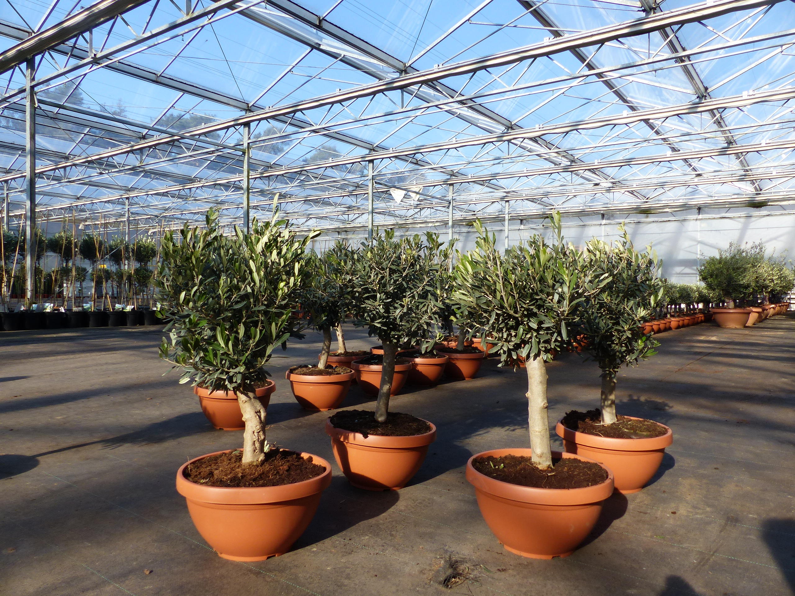 Überwintern: Solange wie möglich im Freien lassen. Diese Olivenbäume können sogar im Freien bei einem hellen und ziemlich windgeschützten überwintert werden; sie sind robust und am Stamm frosthart bis ca. – 13°C. Das Blattwerk sollte bei länger anhaltenden Kälteperioden unter – 8°C mit z.B. einem Pflanzenvlies geschützt werden. In der Ruheperiode wenig gießen, aber bitte nicht völlig austrocknen lassen. Das große Problem im Winter sind nicht zu niedrige Temperaturen sondern oft das Austrocknen!